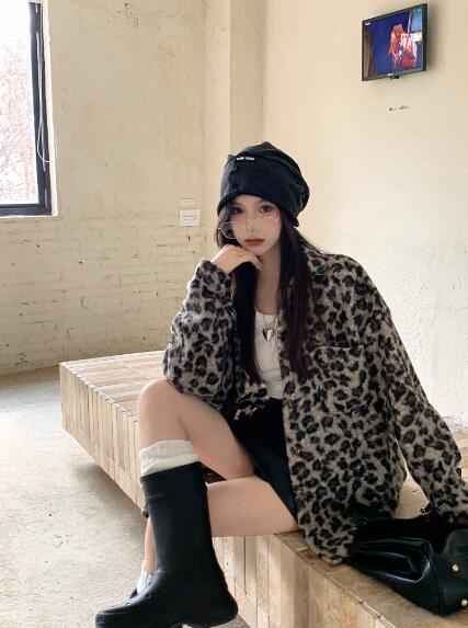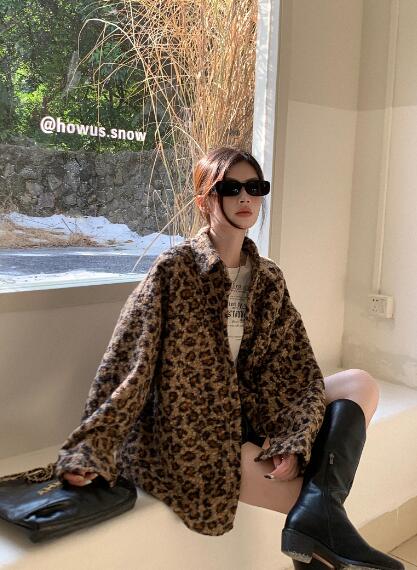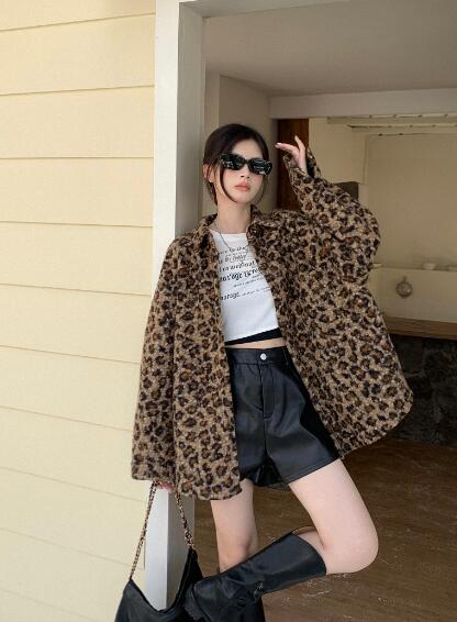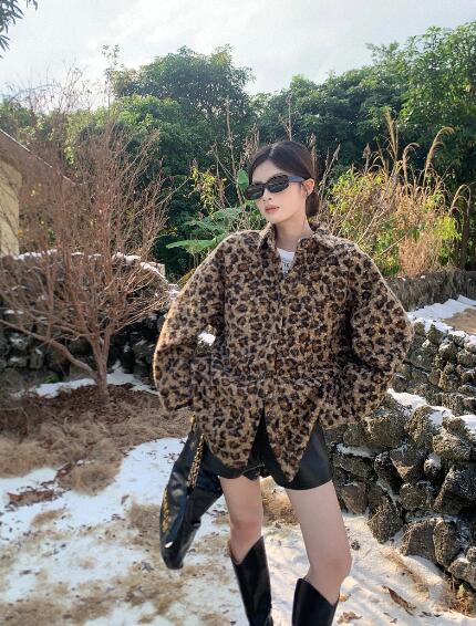 ヒョウ柄ベースボールジャケットスタジャ
