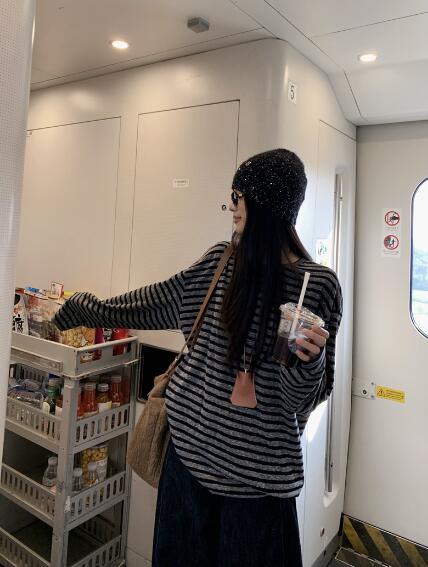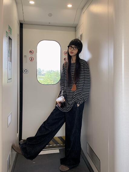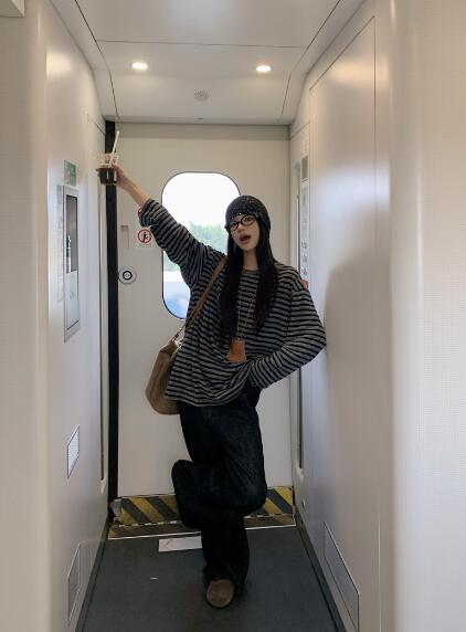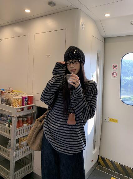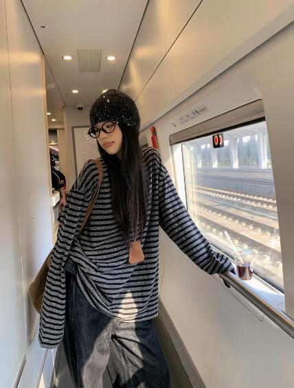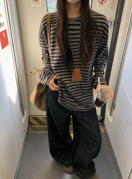 ボーダー柄長袖トップスカットソーTシャ