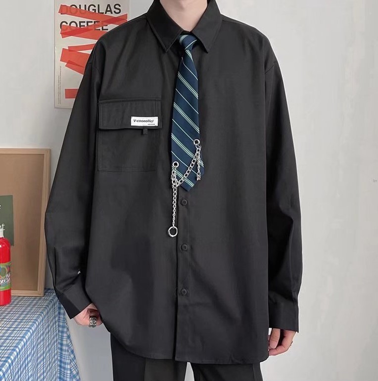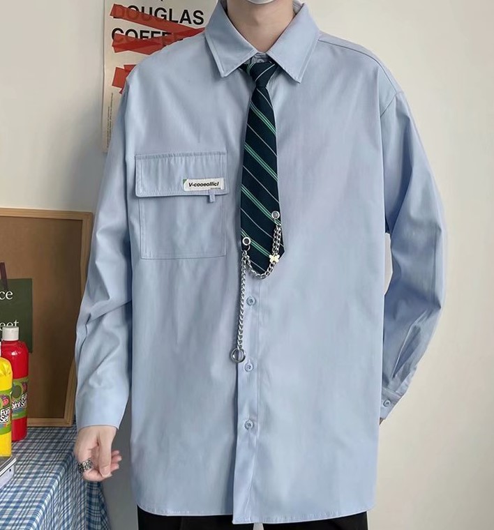 チェーン+ネクタイ付シャツ3色ブラウス