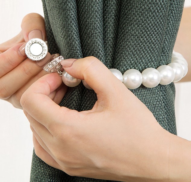 2本セットパールカーテンホルダーカーテンタッセル北欧韓国磁石カーテン留めカーテンアクセサリーおしゃれ可愛い高級感白ホワイトシルバービジュー35cm雑貨インテリアアンティーク強力磁石マグネットカーテン止