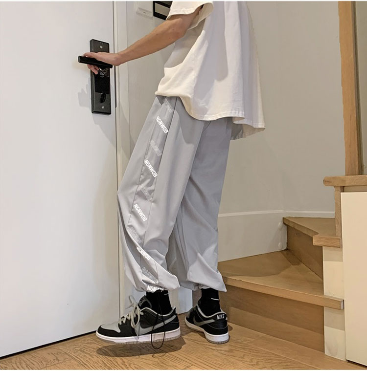 センタープレススリットチェックスウェットパンツズボンボトムスジャージ服下グレーゴムハイウエストロングストレートダンス衣装ヒップホップHIPHOPレディースガールズストリート奇抜派手韓国おしゃれ運動部屋