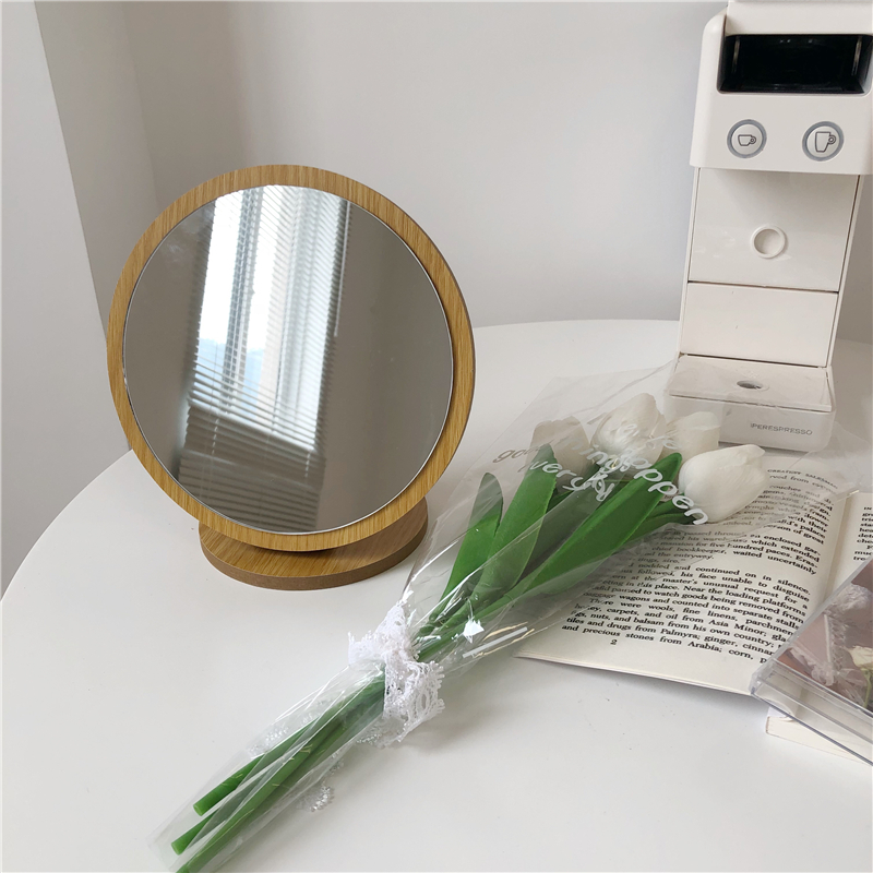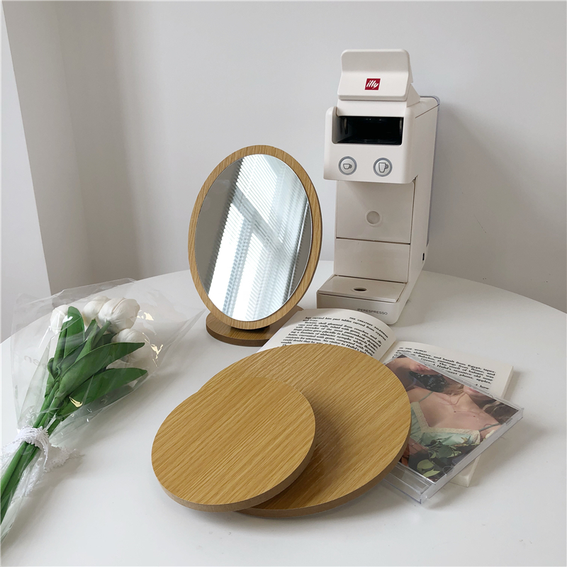スタンドミラー鏡ミラーデザイン雑貨インテリアおしゃれかわいい可愛い卓上丸上大きい 韓国韓国雑貨木化粧鏡卓上鏡コンパクト円アンティークレトロナチュラル円形楕円形ミラー