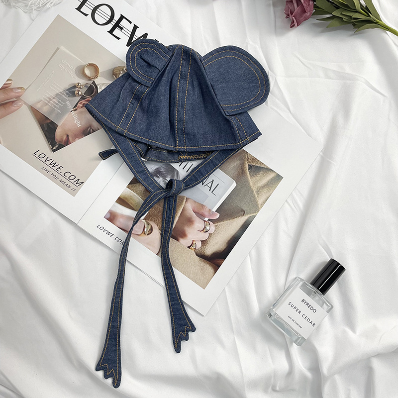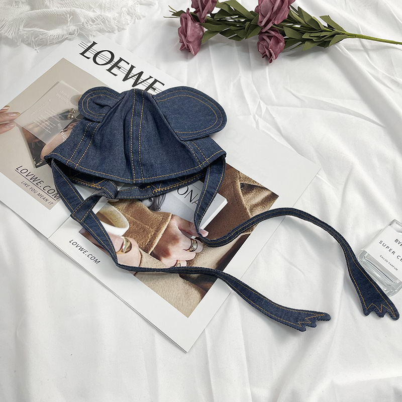 ベビーデニム帽子1歳~6歳 赤ちゃんコットン綿ブルー青おしゃれ可愛い韓国柔らかいキッズ日よけカジュアルナチュラルベビーハットコットン綿ハット無地シンプルリボン紐付き男の子女の子耳くまくまみみ