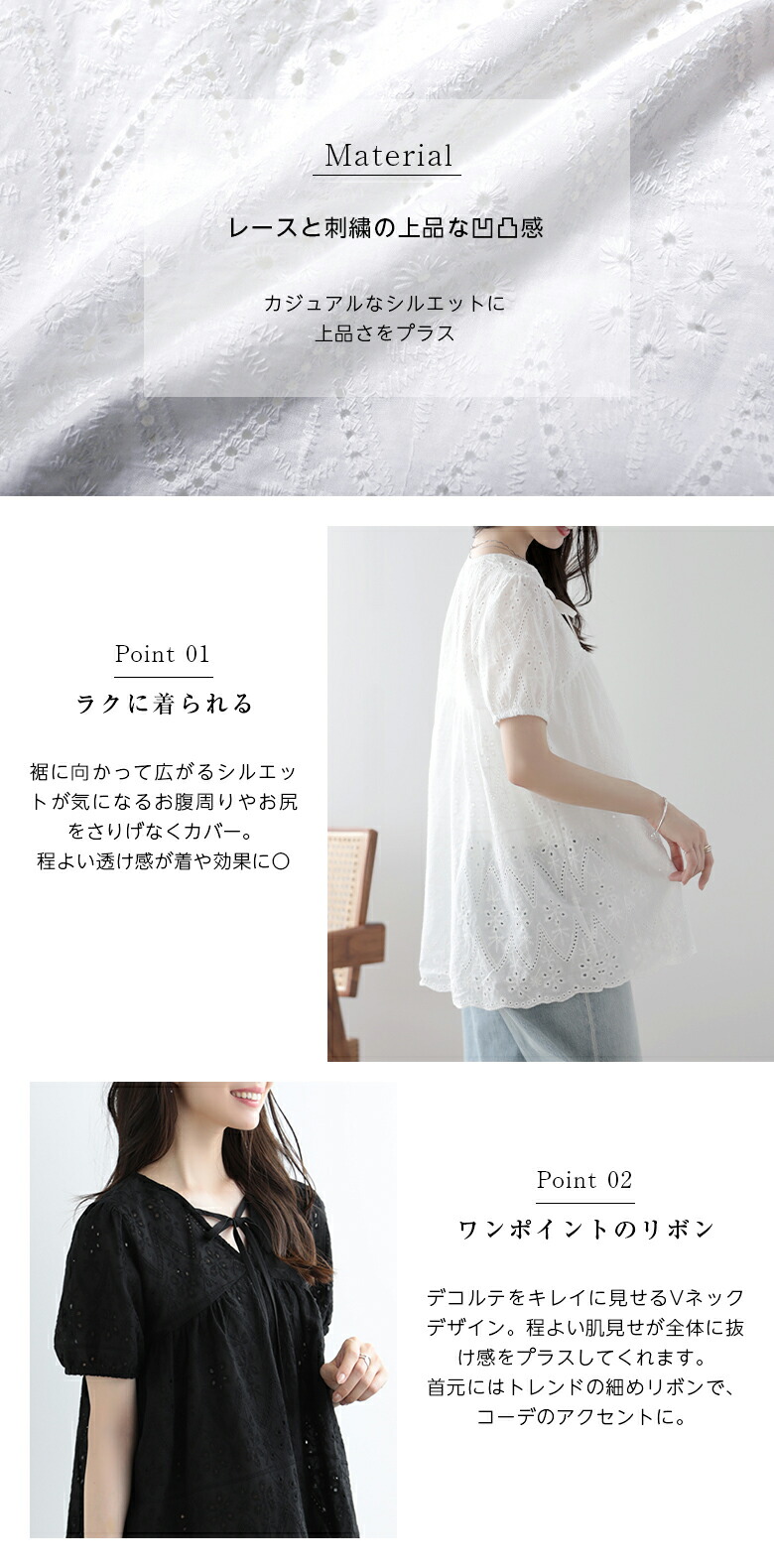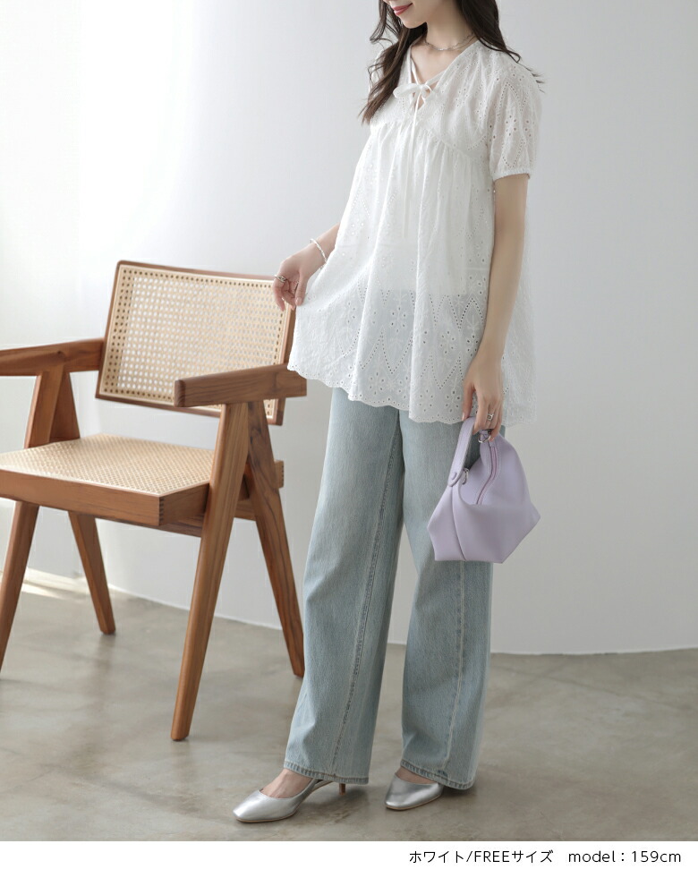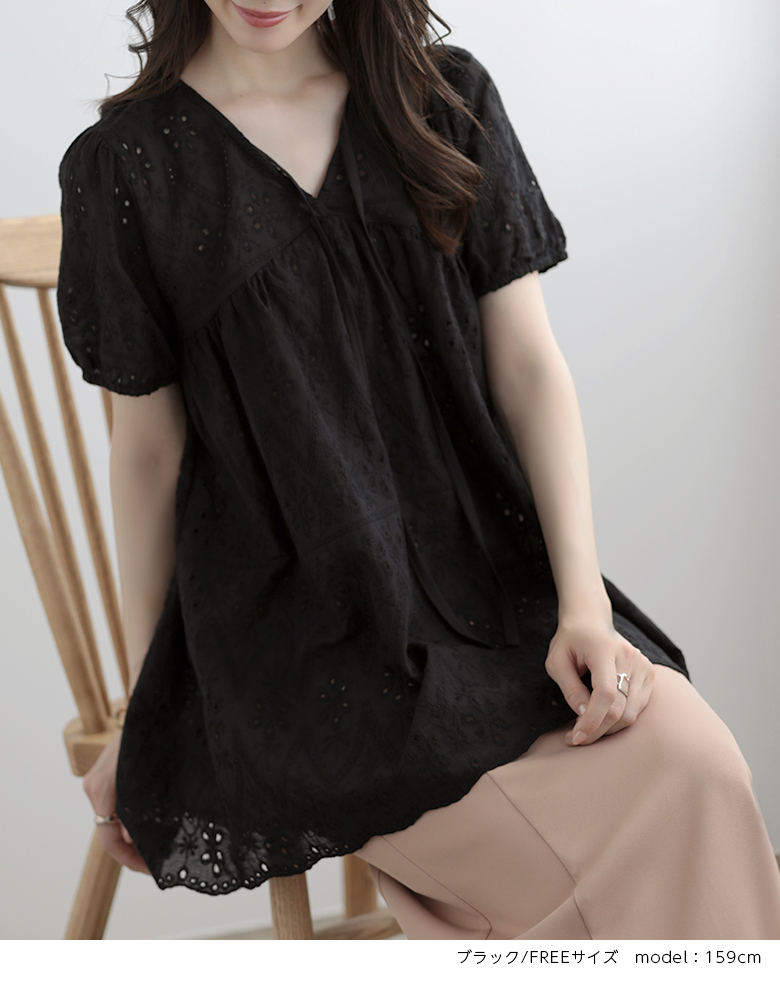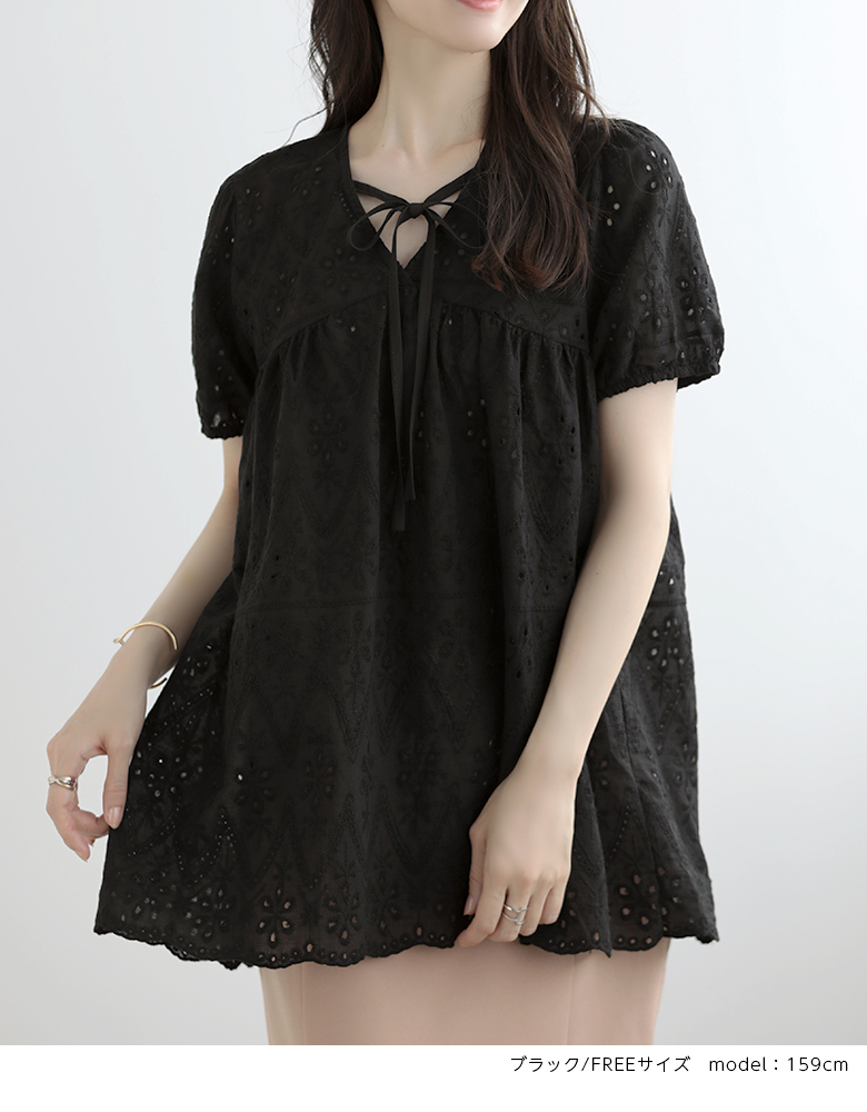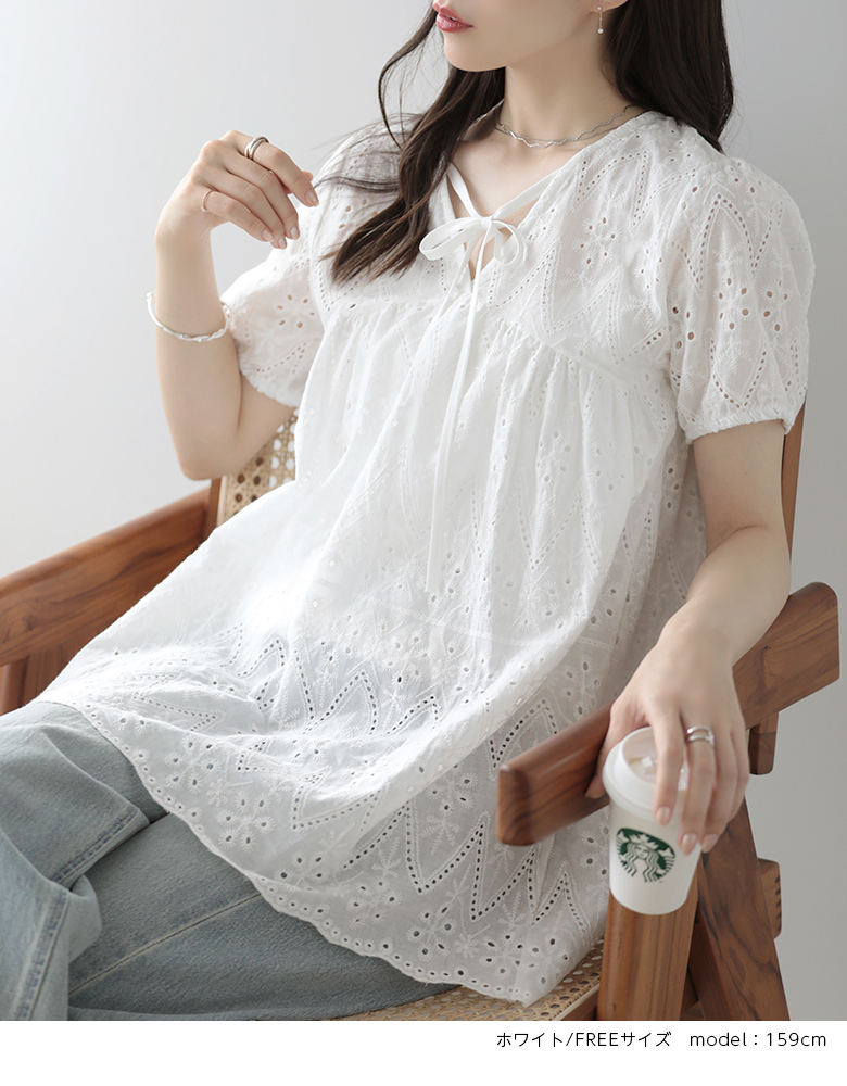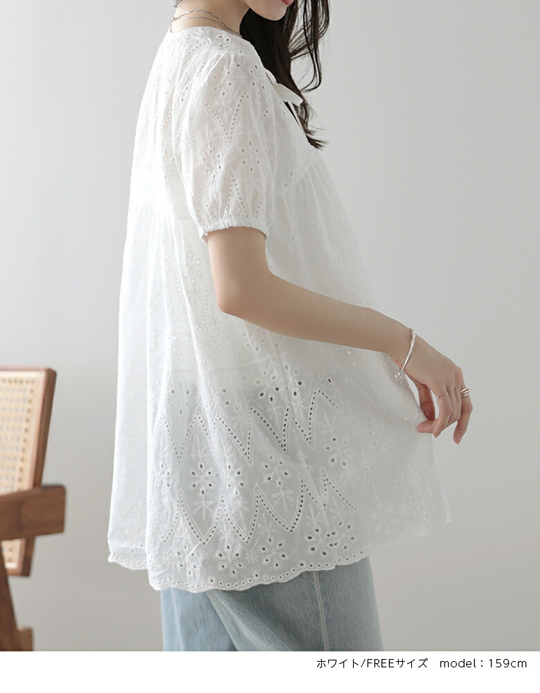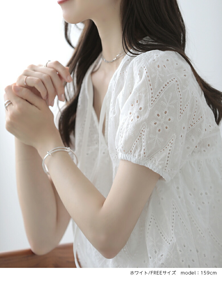 パフスリーブ 半袖 シャツ レース ト