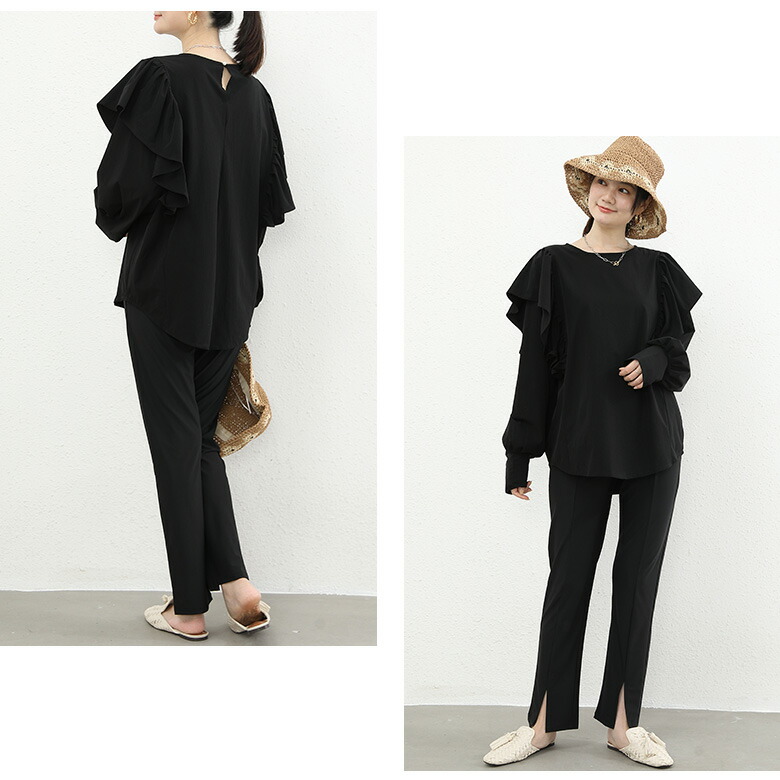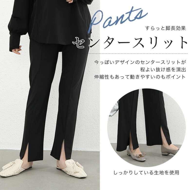 Key0: ストレートパンツ ブラック ワイドパンツ ブラック