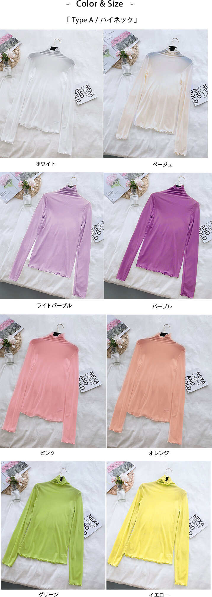 カラー: ブラック ベージュ ピンク パープル グレー ライトパープル ホワイト オレンジ グリーン イエロー ブラウン ライトブルー ネイビー カーキ ミントブルー イエローグリーン モカ