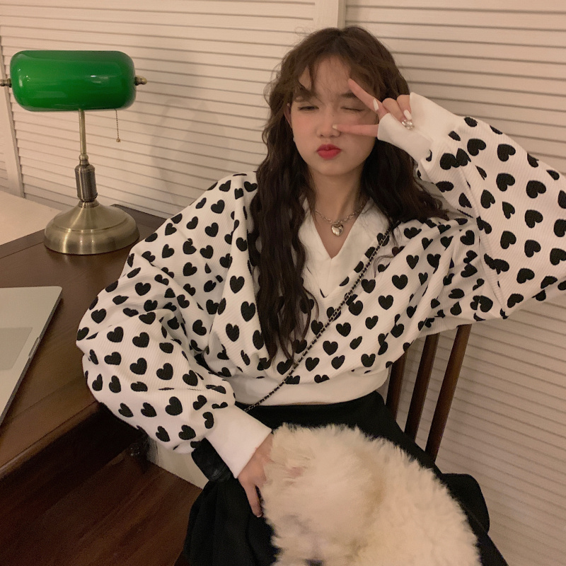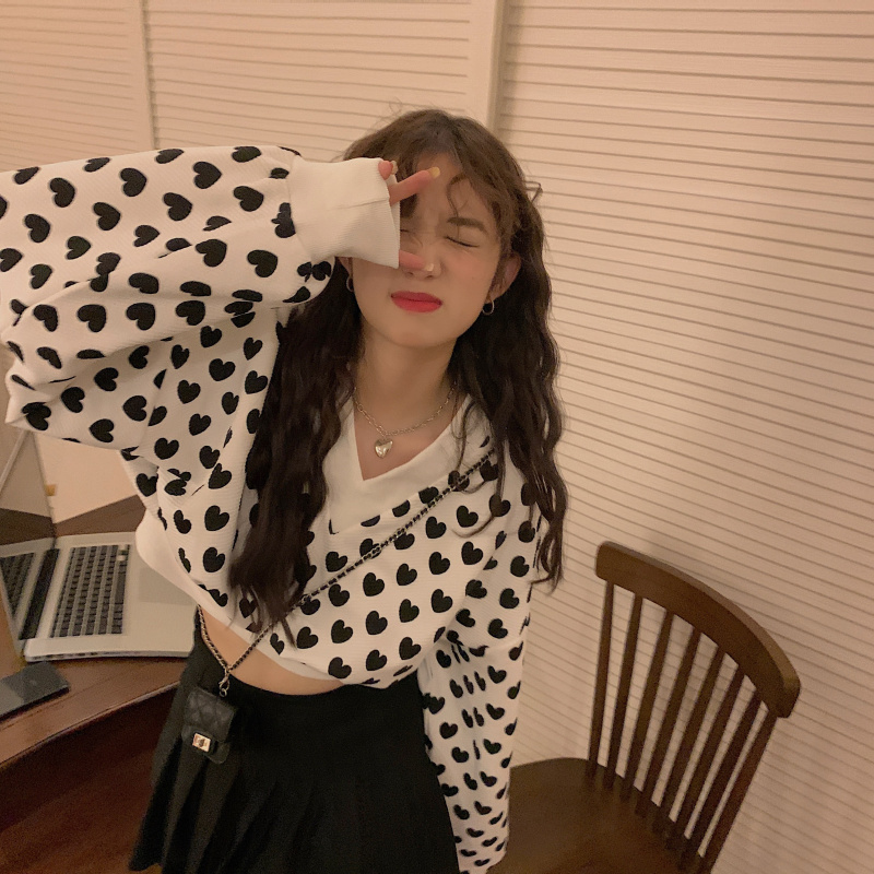 ハートショート丈トップス長袖カットソー