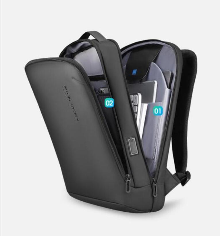 【優れた防水性と耐久性】表側はスタイリッシュなフォルムが崩れにくい丈夫な撥水素材で、一般的なバックパックのようにぺしゃんこにならずラップトップを保護します。※ファスナー部分は防水仕様ではございません。激しい雨の場合はご注意ください。