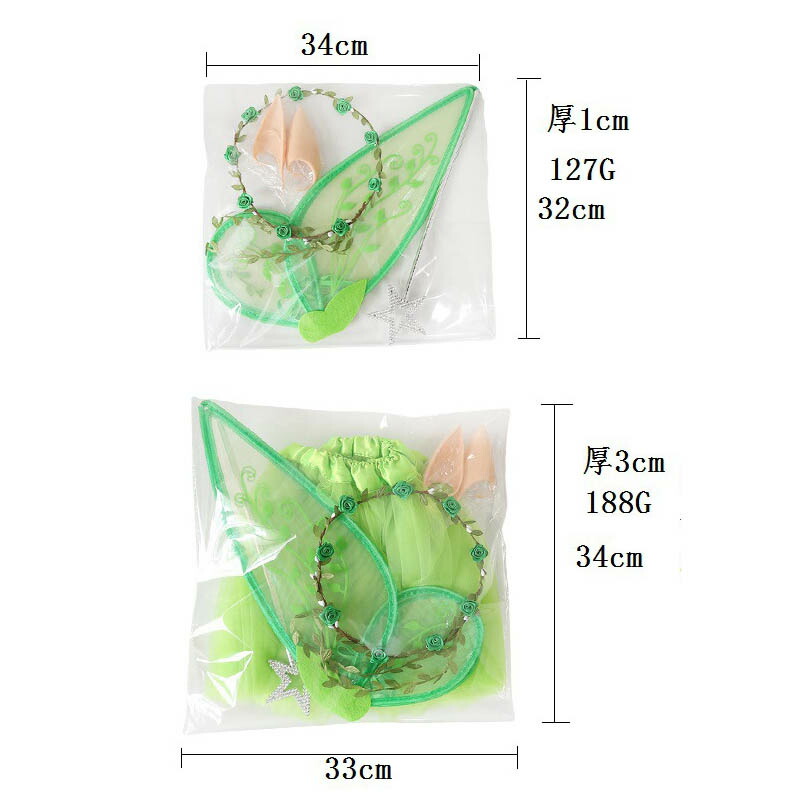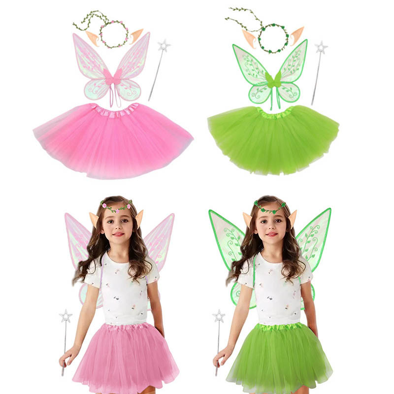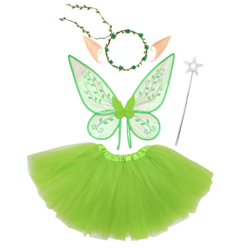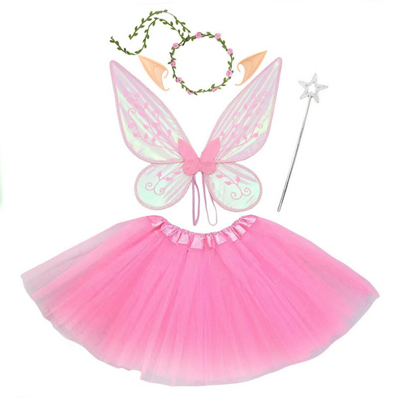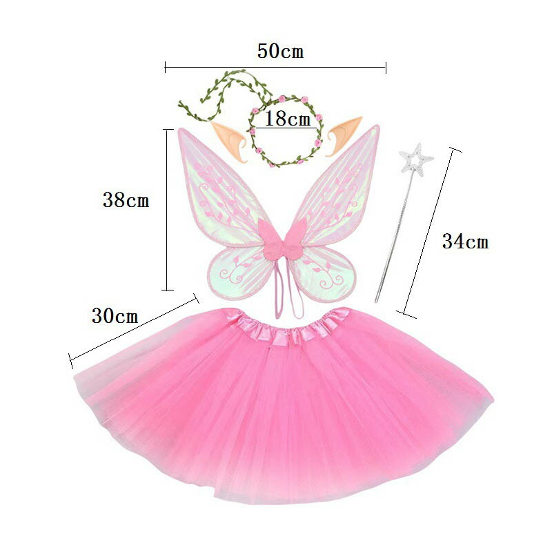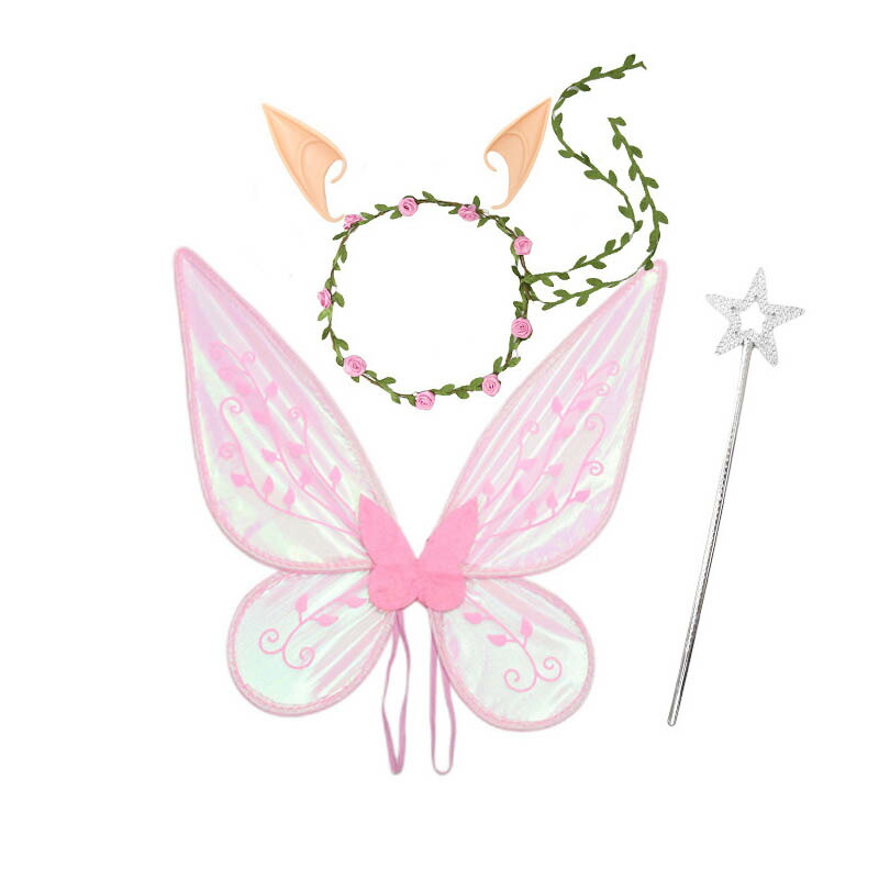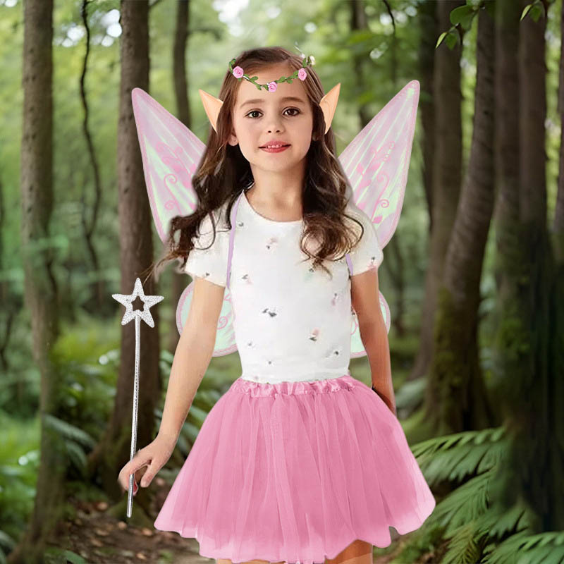 【5点セット】妖精の羽*1、カチューシャ*1、ステッキ*1、エルフ耳*1ペア、スカート*1