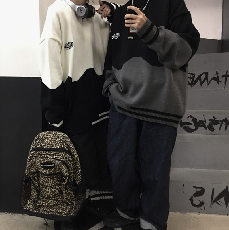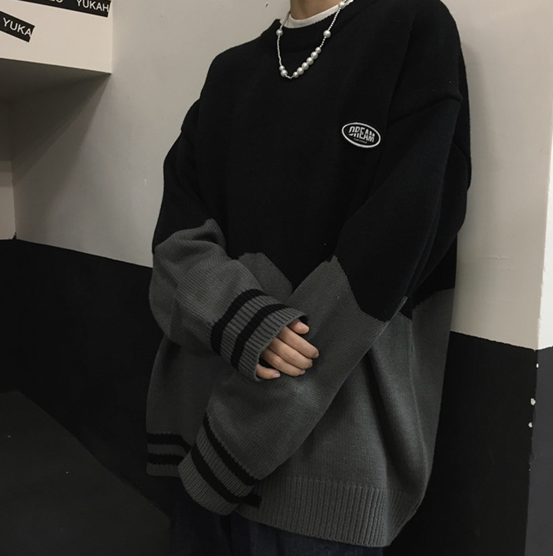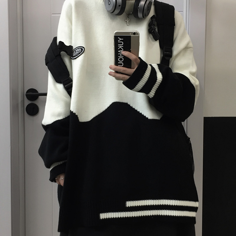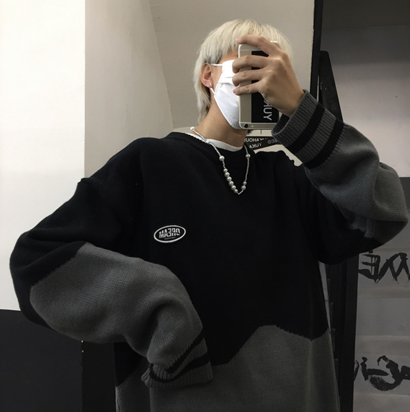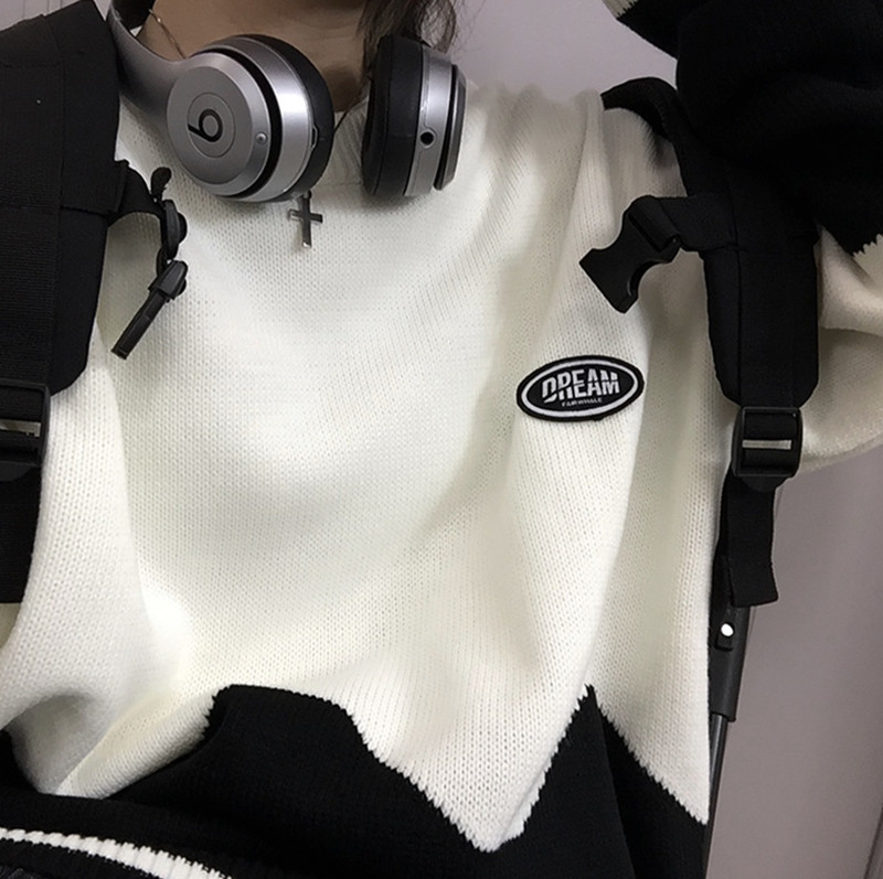 バイカラーニットセーター2色長袖トップ