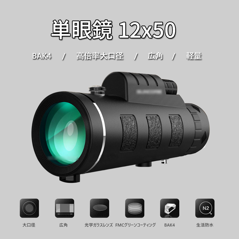 単眼鏡 望遠鏡 12x50 高倍率 望遠鏡 暗視対応 付属品なし