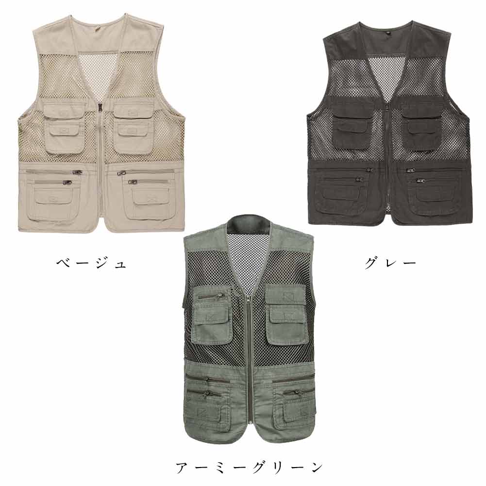 カメラマンベスト フィッシングベスト アウトドア メッシュ 多機能 お釣り 登山服 大きいサイズ ミリタリー 撮影用