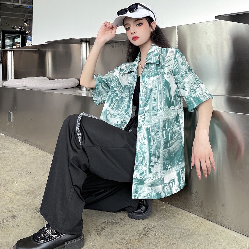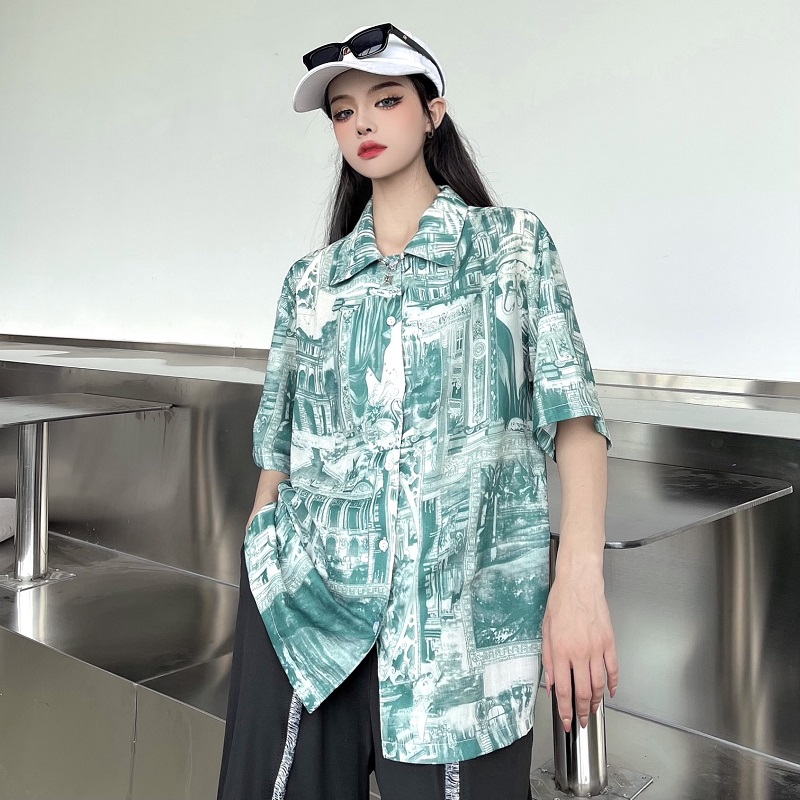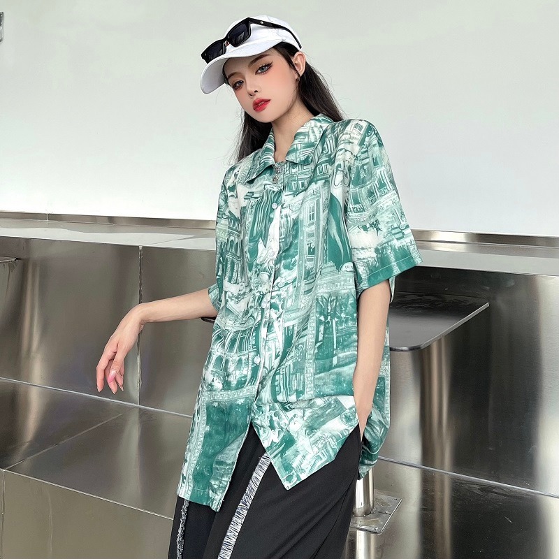 柄シャツトップスカットソーブラウスシャ