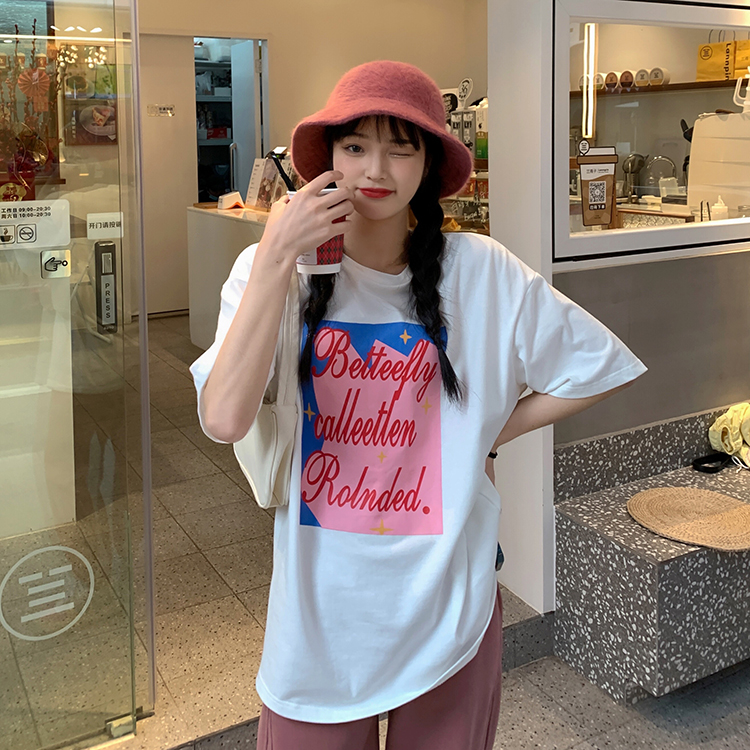ロゴTシャツ2色トップスカットソー半袖大きいサイズビッグゆったり白緑パステルカラフルダンス衣装ヒップホップHIPHOPレディースメンズガールズストリート奇抜派手個性的プリントペイント韓国レトロヴィンテ