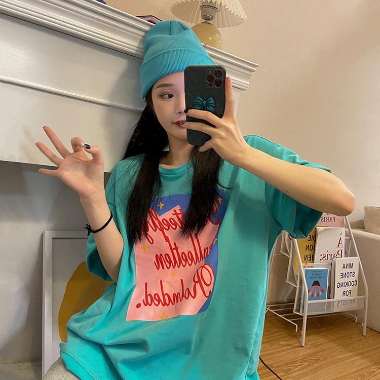 ロゴ Tシャツ 2色 トップス カットソー 半袖 大きいサイズ ビッグ ゆったり 白 緑 パステル カラフル ダンス 衣装 ヒップホップ HIPHOP レディース メンズ ガールズ ストリート 奇抜 派手 個性的 プリント ペイント 韓国 レトロ ヴィンテージ風