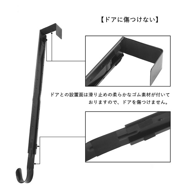 【ドアに傷つけない】ドアとの設置面は滑り止めの柔らかなゴム素材が付いておりますので、ドアを傷つけません。