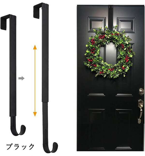 リースフック 長さ調整可能 2color クリスマス リース フック リースハンガー リースホルダー リース用 ハンガー ドアフック 玄関 伸縮 39-66cm