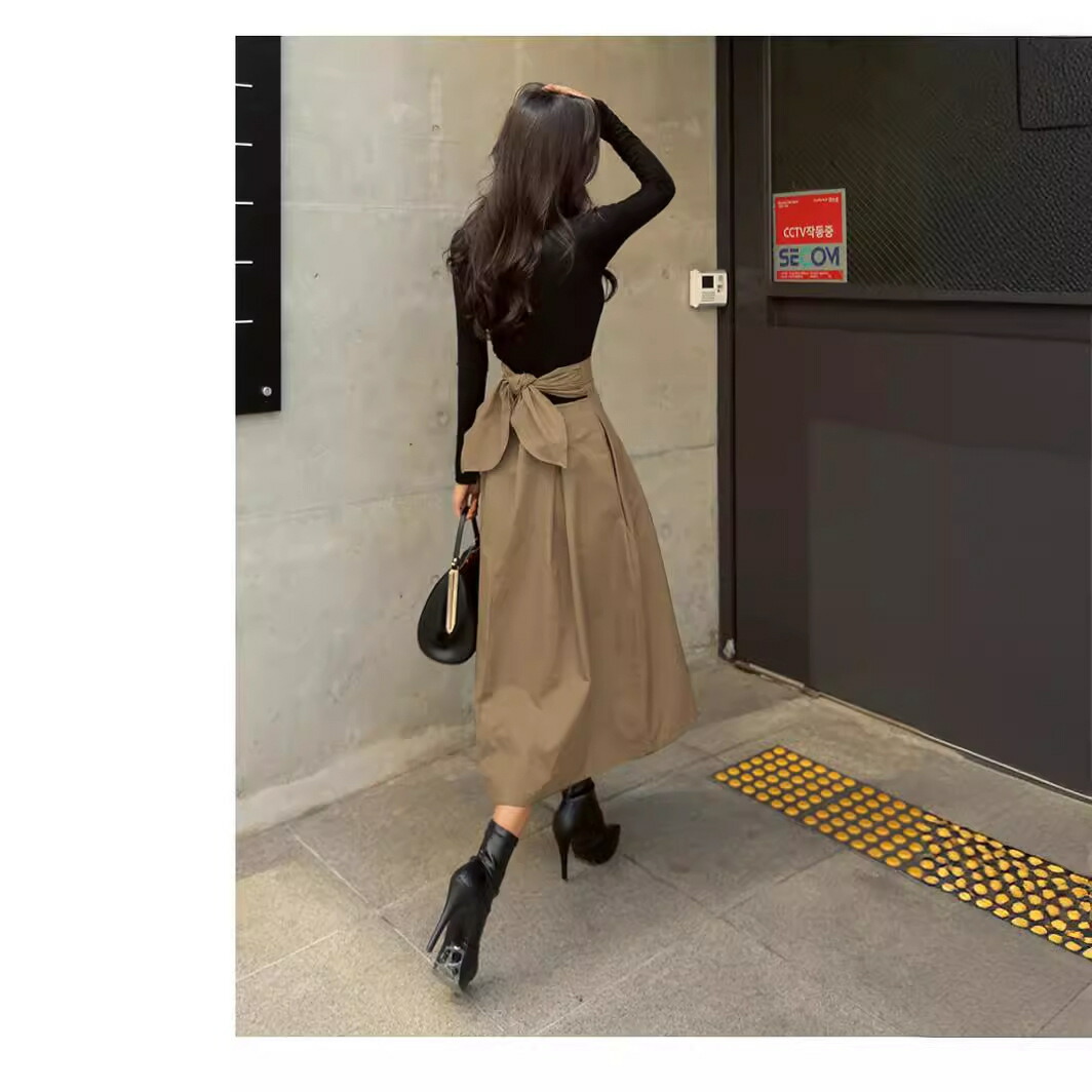 シアースリーブ ドッキングシャツ ボウタイシャツブラウス