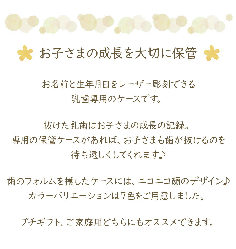 お子様の乳歯を大切に保管 にっこりかわいい乳歯ケース お子様のお名前を彫刻します 出産祝いにもおすすめ 乳歯入れ 乳歯ケース 名入れ