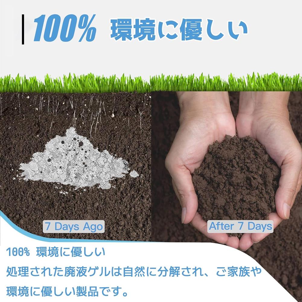 凝固剤には抗菌消臭機能があり、強力な吸水ポリマーが排泄物を素早く吸収します。臭いを防ぎ、安全・無毒で分解可能な成分を使用しているため、安心してお使いいただけます。