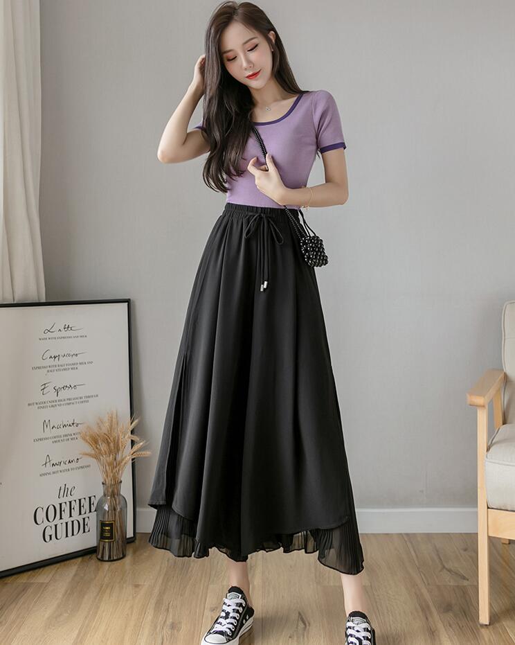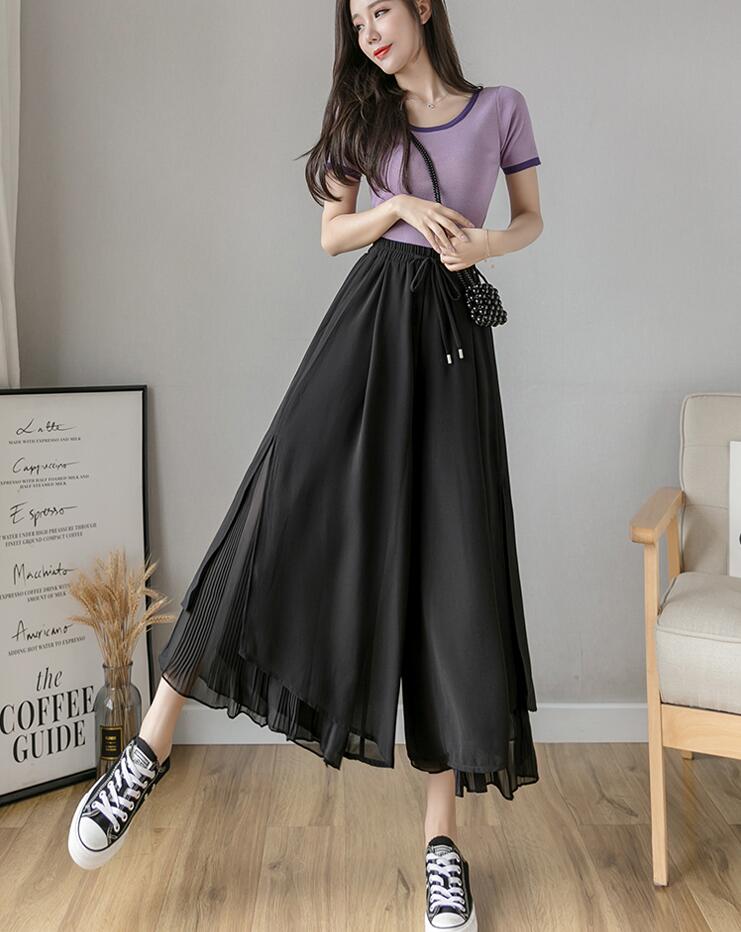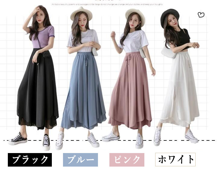 スカーチョプリーツスカーチョシフォンワ