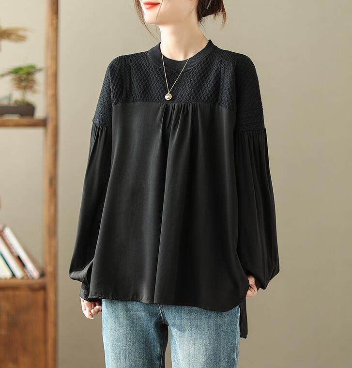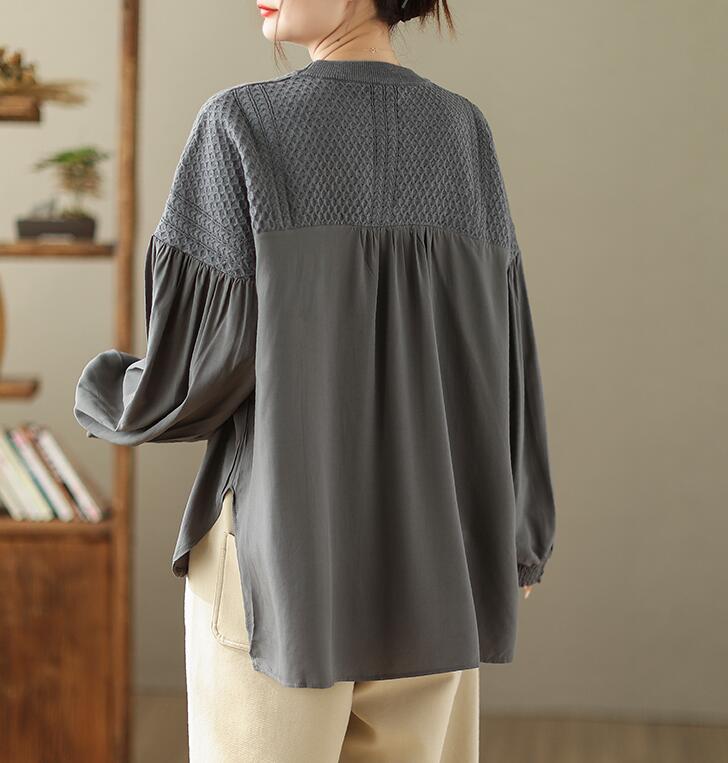 シアースリーブ ドッキングシャツ ボウタイシャツブラウス