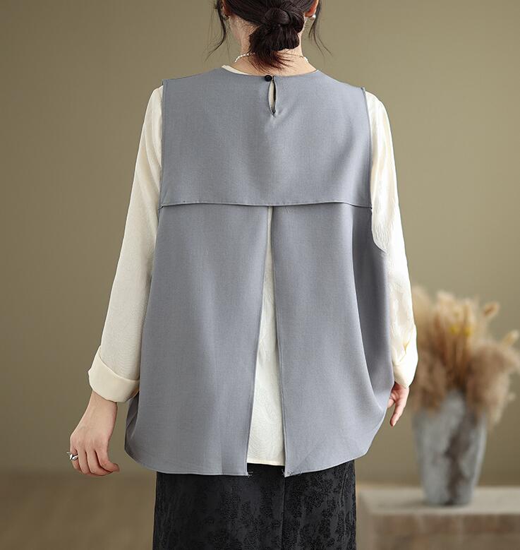 シアースリーブ ドッキングシャツ ボウタイシャツブラウス