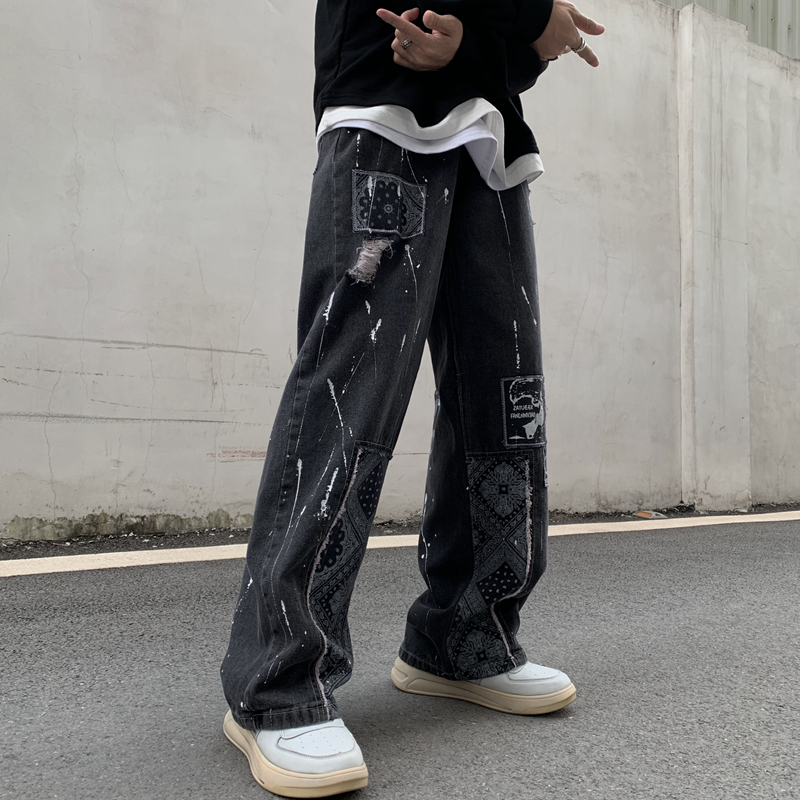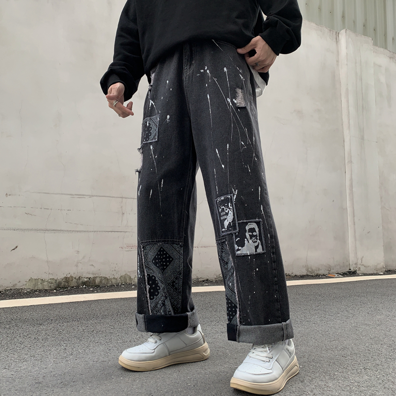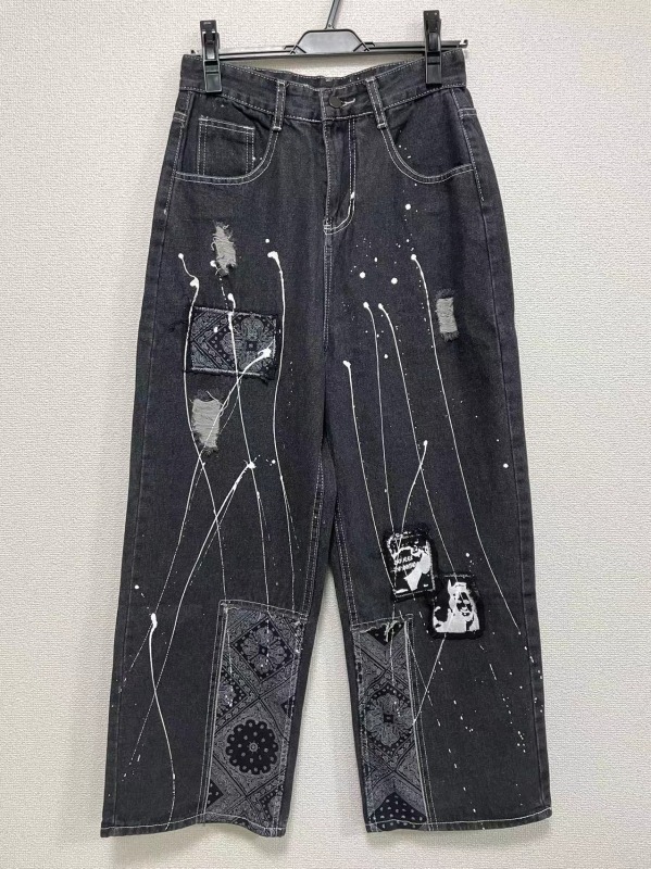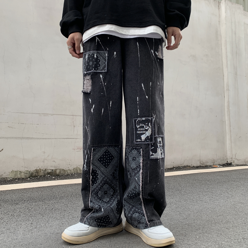 ワッペンダメージジーンズデニムパンツジ