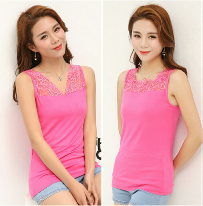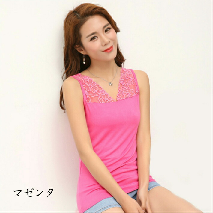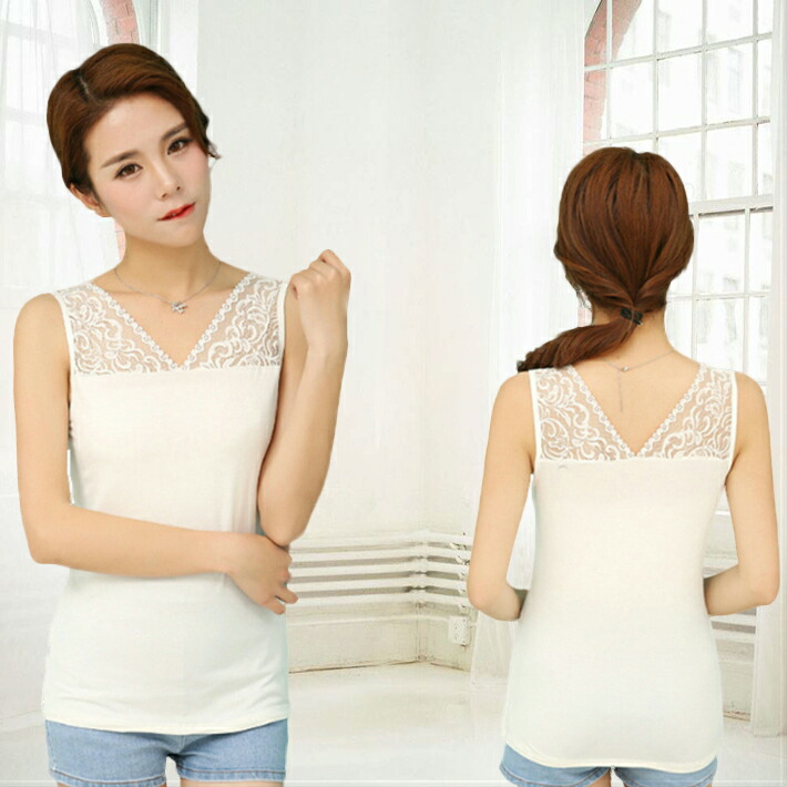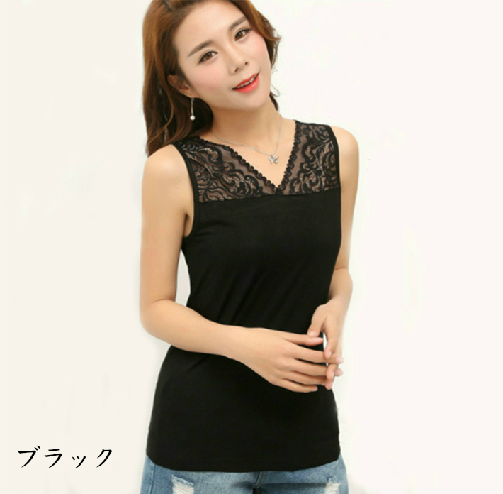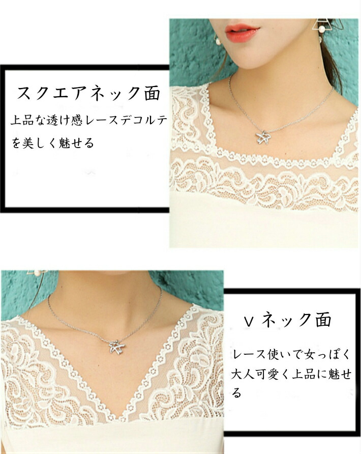 レースインナー 花柄 刺繍両面Vネック
