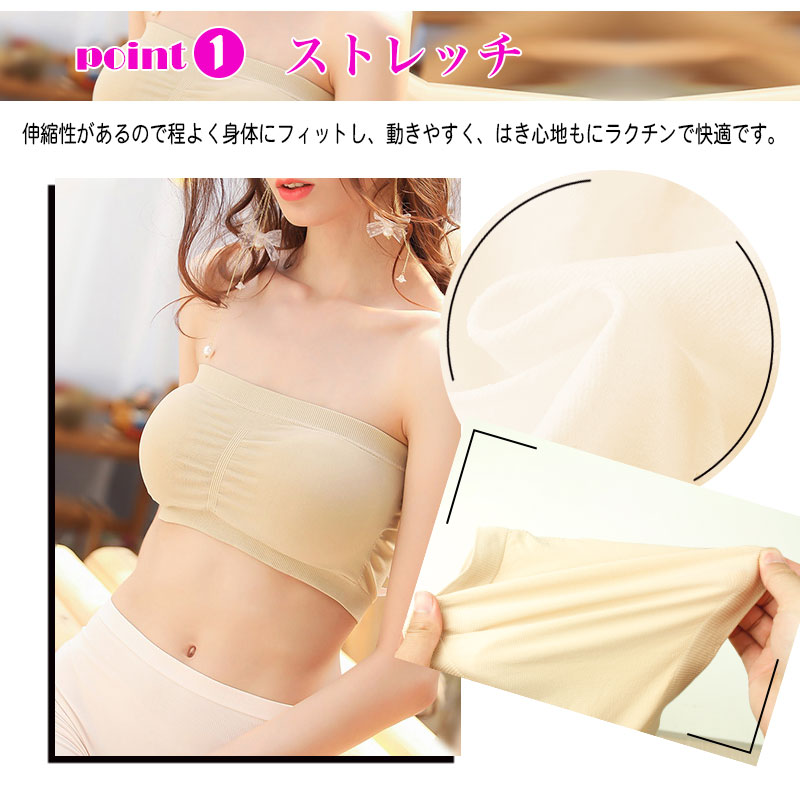 チューブトップ ブラ カップ付 伸縮性