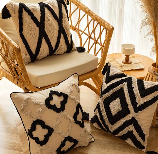 モチーフクッションカバー3デザイン45cm×45cm北欧おしゃれ可愛い洗える四角正方形韓国雑貨インテリアもこもこボンボン
