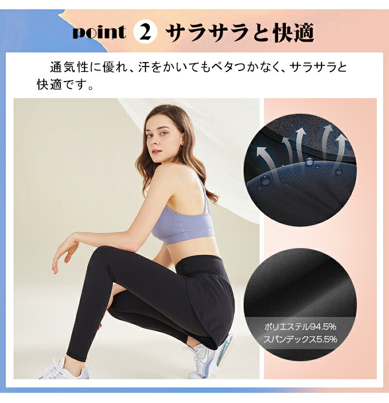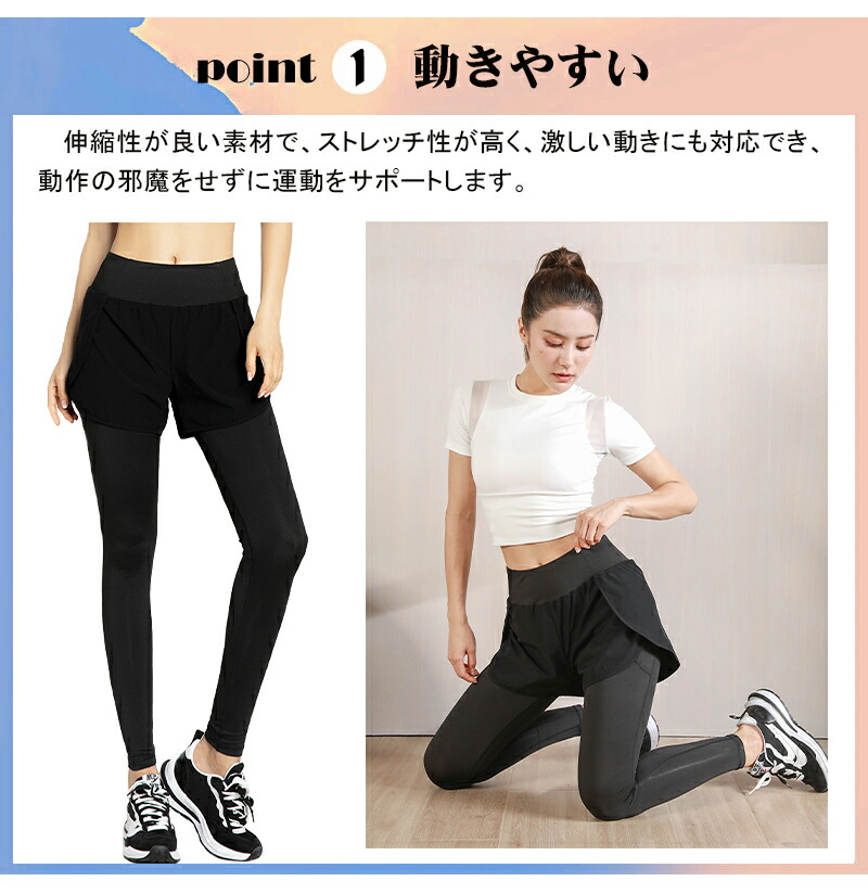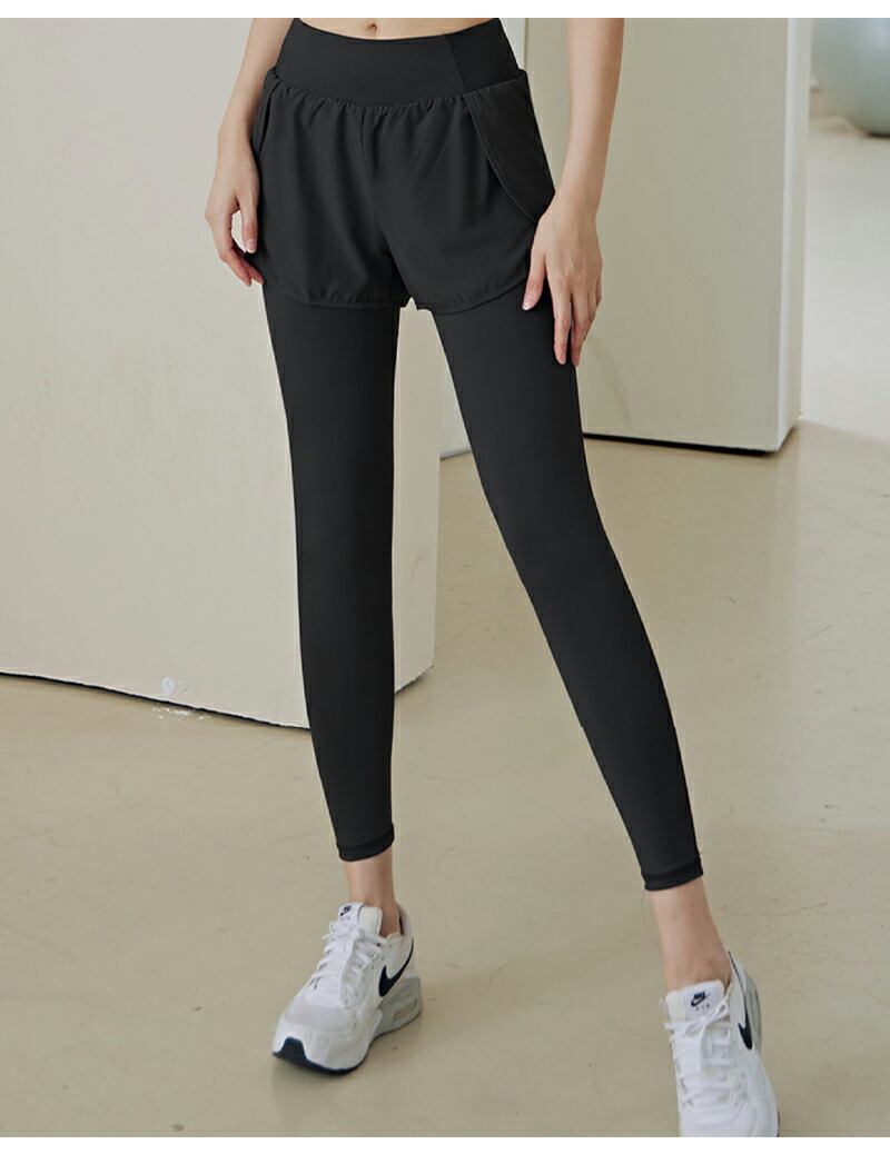 ※当商品は機械による生産過程において、どうしても生地を織る際の糸の 継ぎ目や多少のほつれ などが生じている場合がございますが、 品質上の問題ではございませんのでその点ご了承下さい 。 ※当店では、全ての商品の検品を自社または外部の検品会社を通して行っております。 コスト削減を徹底し最適価格でお客様にお届けするため、外部の検品会社を信用してそのまま商品 を発送する場合があります。 万が一不良品をお届けしてしまった場合は、すぐに交換対応させていただきますのでお手数おかけ いたしますがメールかお電話にてご連絡ください。 商品説明: スポーツ ヨガ エクササイズで大活躍するショートパンツ付きレギンス。 一体型なのでコーデの悩みが軽減されお手軽に着替えることが可能です。 吸汗速乾性能でいつでも爽やかドライな感覚で気持ちよく。さらに改善された高いストレッチ性能 で、あらゆる動きを妨げません。 ショートパンツタイプなので動きやすさも抜群!おしゃれに快適にスポーツをを楽しみましょう!