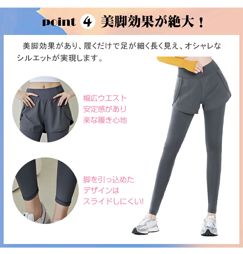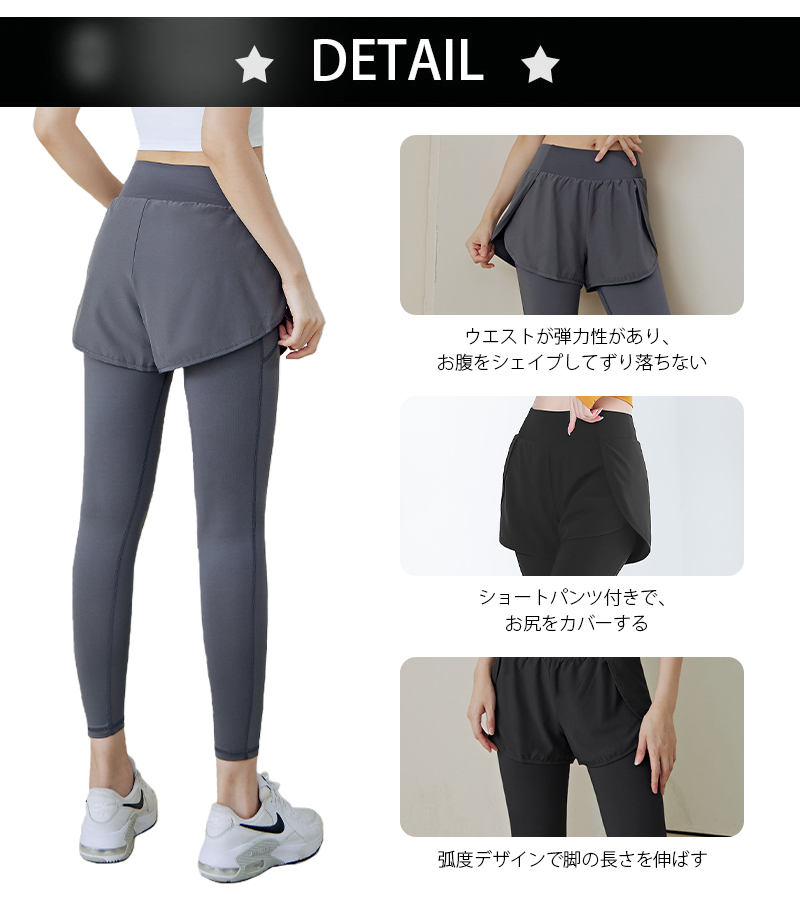 ヨガパンツ ショートパンツ 一体型 レギンス レディース 9分丈 大きいサイズ 体型カバー 小尻効果 動きやすい 太もも~足首細見え おしゃれ 美シルエット 美尻&美脚 3色