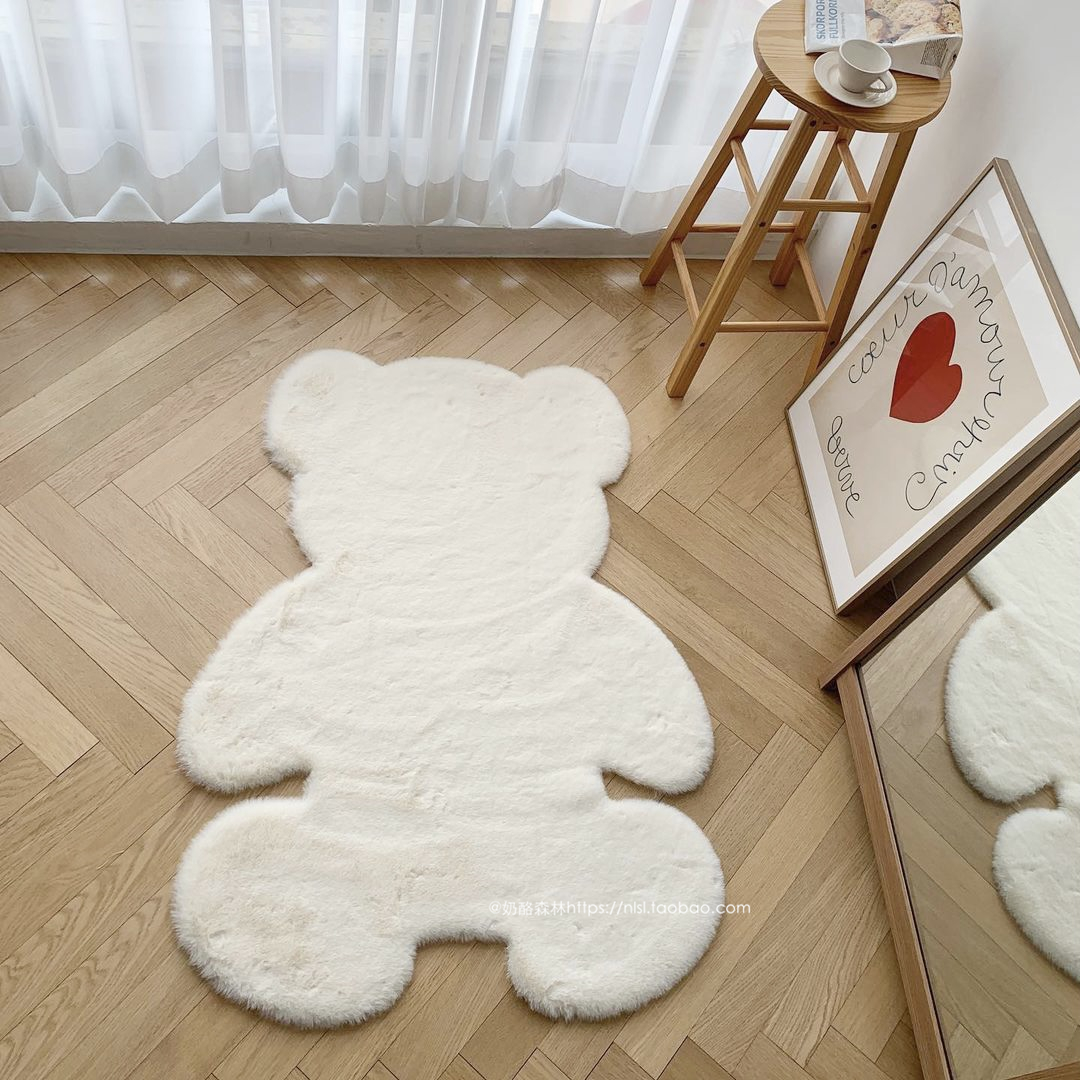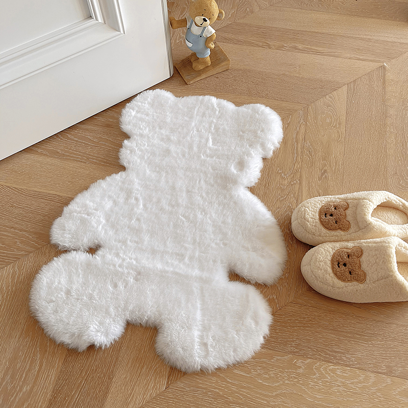 くまマット45cm×60cm60cm×80cmベアふわふわもこもこおしゃれ可愛い韓国雑貨インテリア白ホワイトブラウン絨毯無地シンプル玄関マット室内ラグファーカーペット大きい小さい子ども部屋ムートン北欧