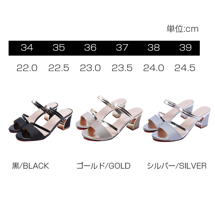 サンダル 22.0cm-25.0cm ローヒール レディース ミュール ヒール ミュールサンダル キラキラ パーティー 夏 サンダル 疲れない
