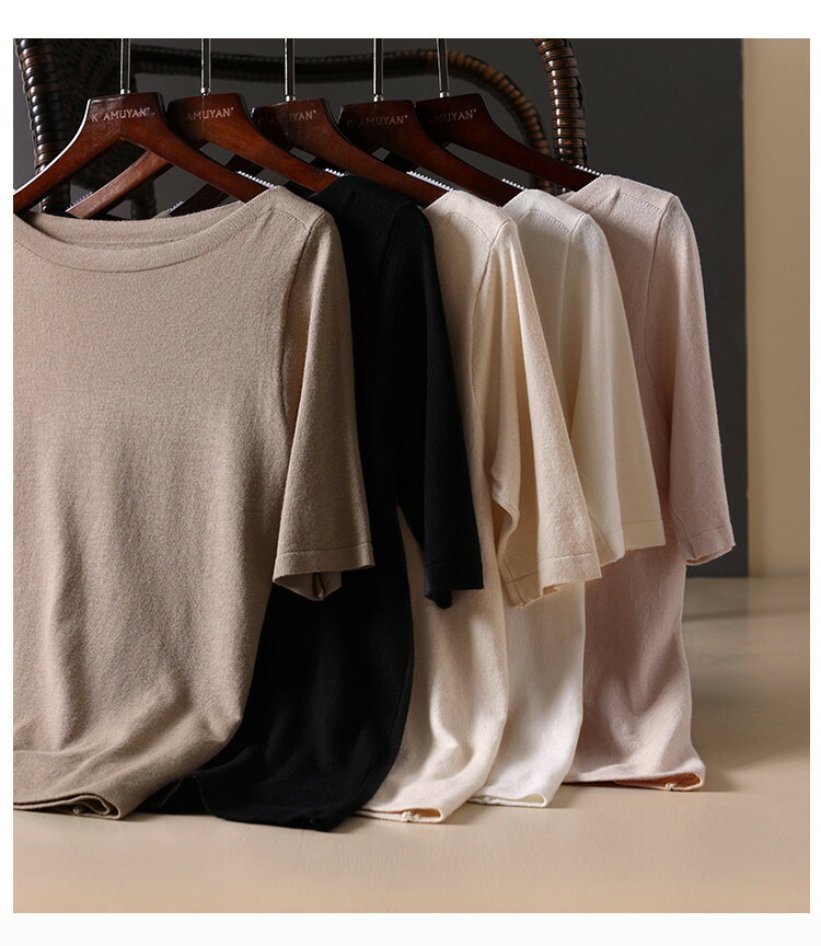サマーニット 春 夏 五分袖 5分袖購入 註文後 結構早く届き 時期的に気温の変化があるので、少し暖かいなぁと 思う日は、5分袖を着たり 良い買い物をしたと思っています。