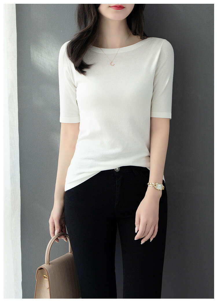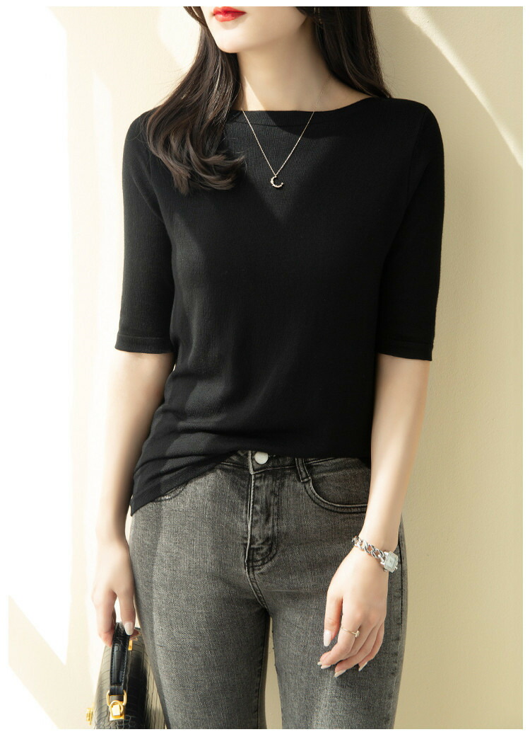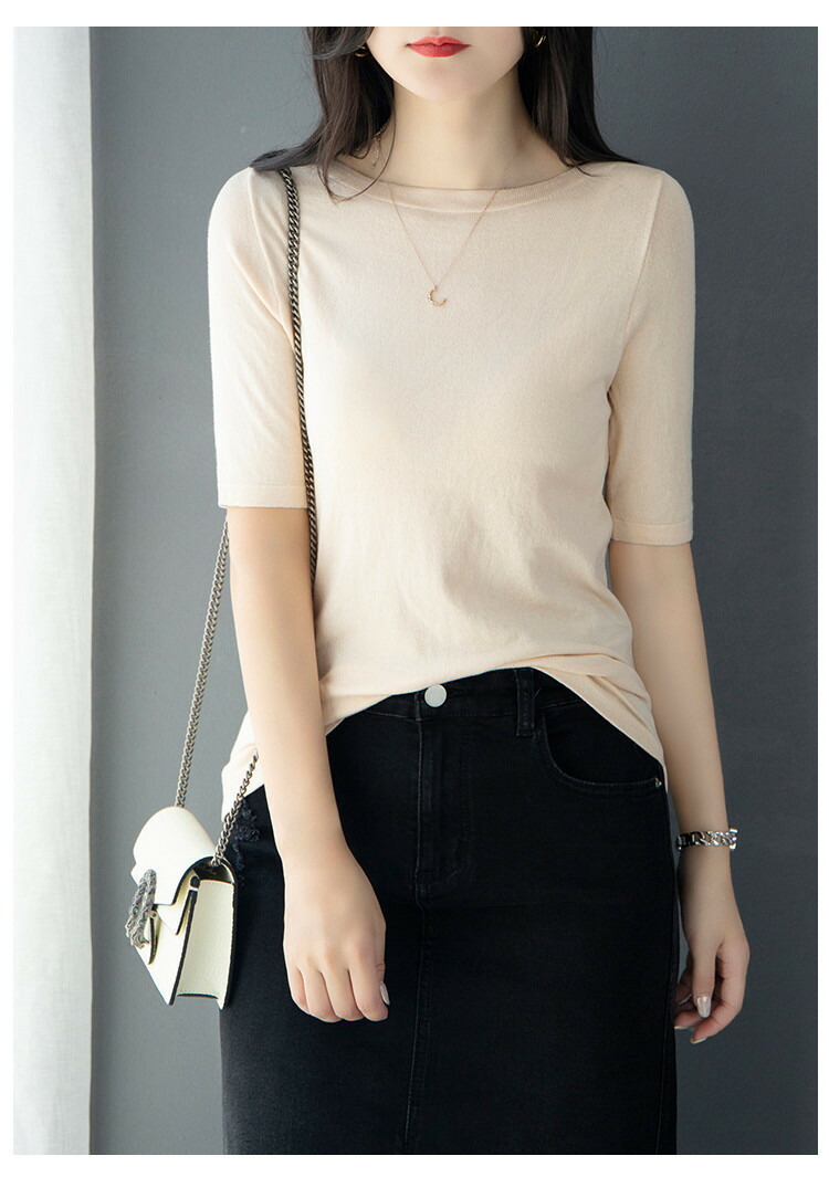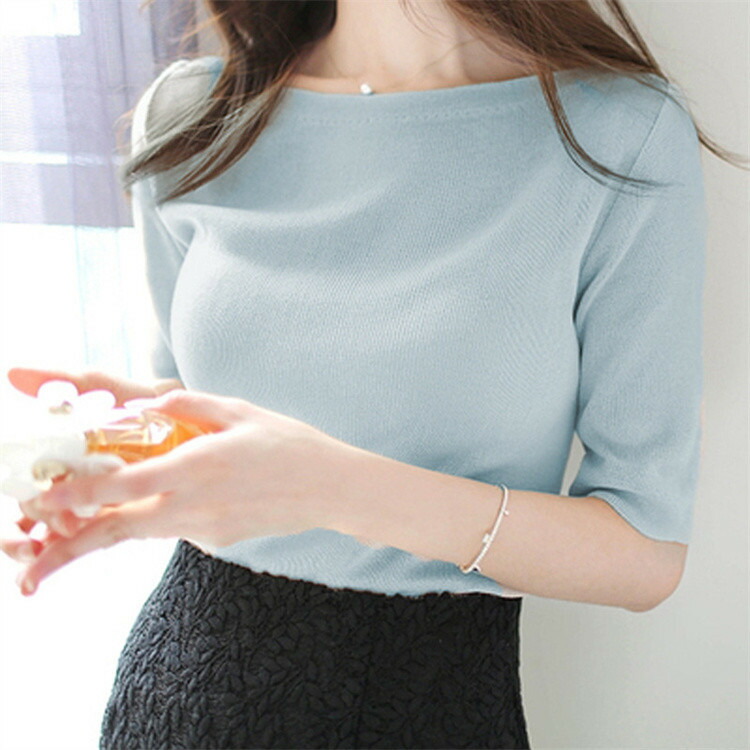 サマーニット 春 夏 五分袖 5分袖 半袖 レディース プルオーバー ボートネック ライトニット トップス カットソー ニット着痩せ 細見え オフィスカジュアル デイリー トップス ニット 接触冷感