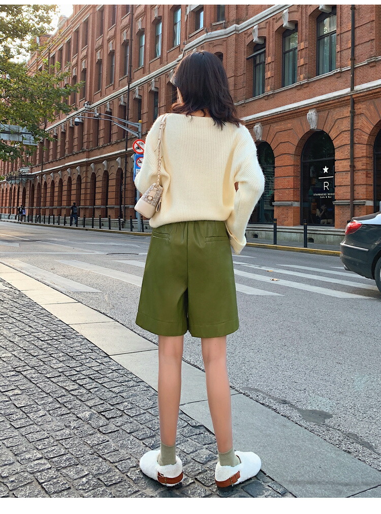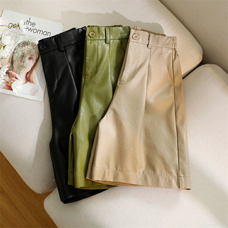 フェイクレザーハーフパンツパンツ レディース ボトムス ズボン ハーフパンツ ショートパンツ ウエストゴム ゆったり 秋冬 レザーショートパンツ