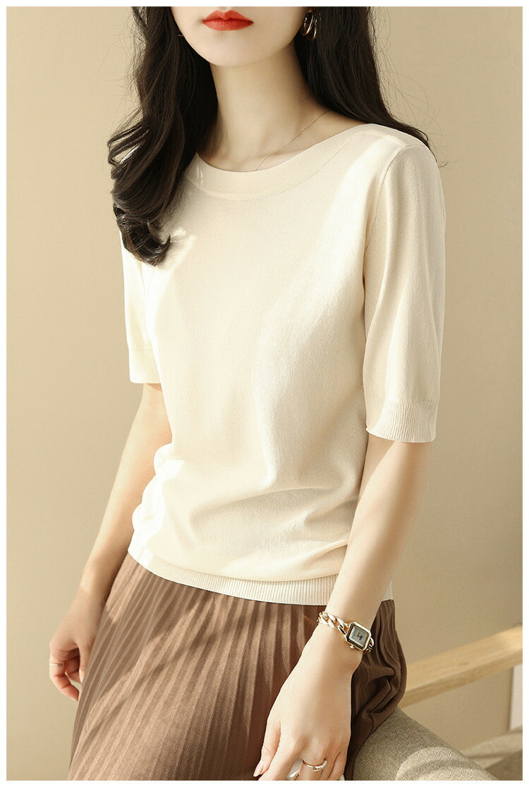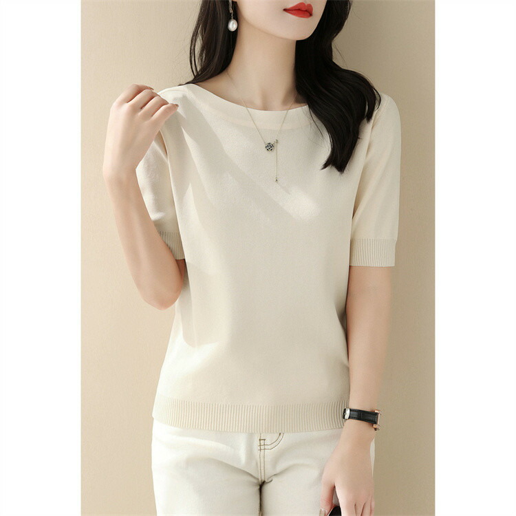 サマーニット レディース トップス 半袖 カットソー ボートネック 涼感ニット ニットソーレディースファッション トップス ニット セーター セーター
