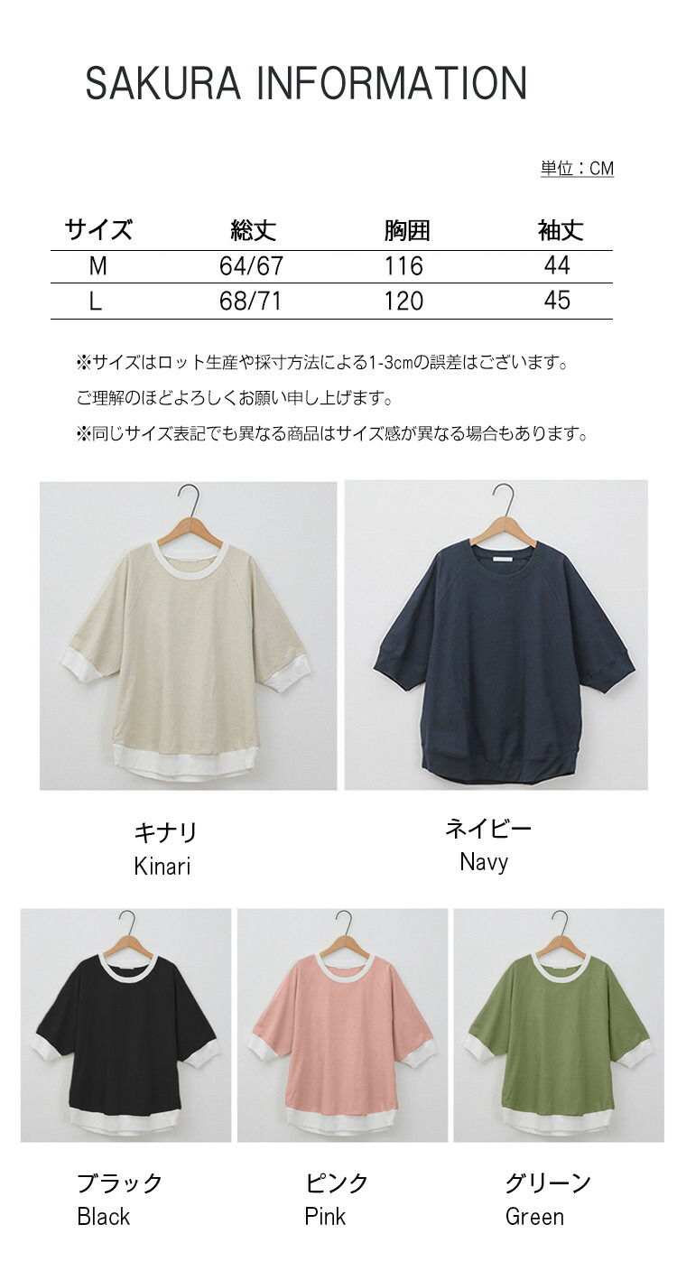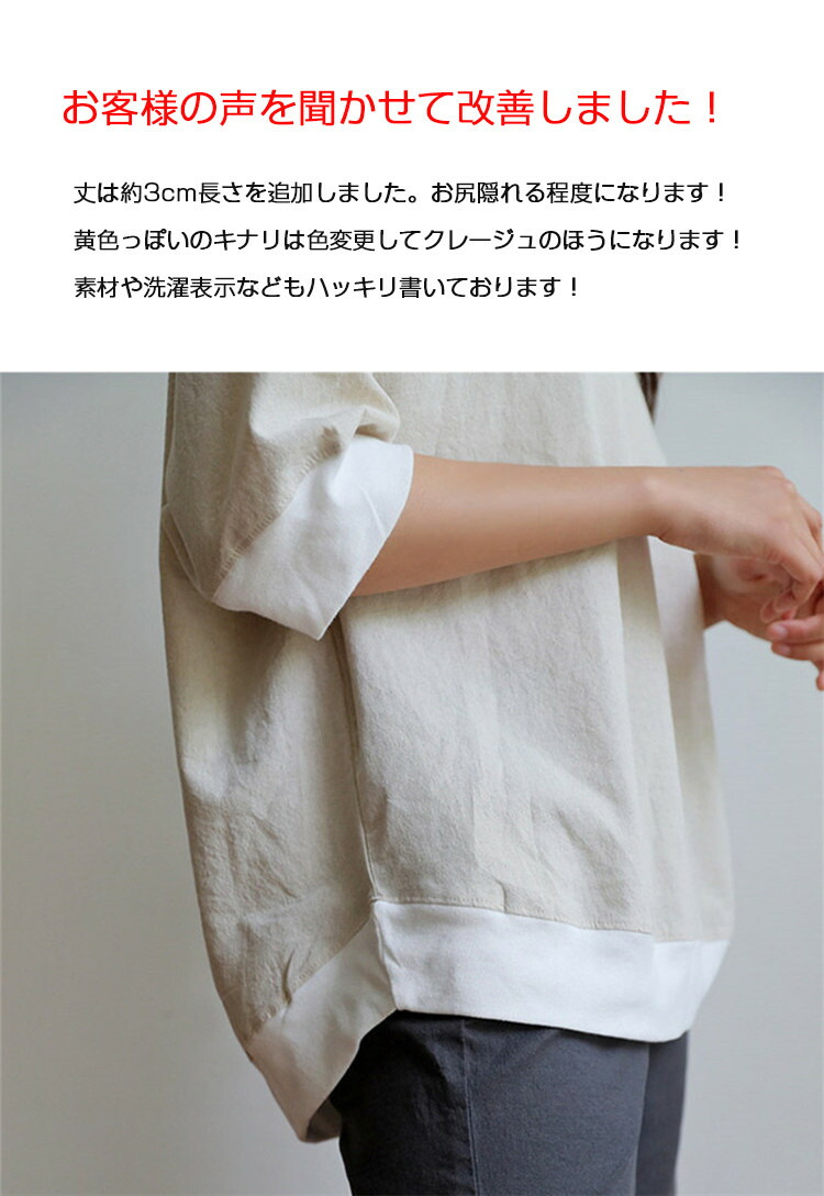 商品情報素材 レーヨン50% 麻30% 綿20%裏地 なしポケット なし生地の伸縮性 伸縮しません(リブ部分があります。)生地の透け感 キナリは透け感があります ※インナー必須ですカラー キナリ(Kinari)/ネイビー(Navy)/ブラック(black)/ピンク(pink)/グリーン(green)サイズ M-総丈約64-67cm 胸囲約116cm 袖丈約44cm L-総丈約68-71cm 胸囲約120cm 袖丈約45cm生産国 中国包装について 環境保護の観点から、「簡易包装」を推進しております明細書について 当店ではエコロジーと個人情報流出防止のため、ご指示の無い限り明細書を発行しておりません。