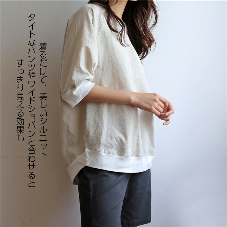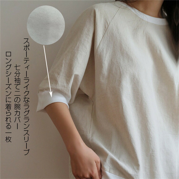 カットソー レディース プルオーバー 七分袖 トップス カジュアル おしゃれ ラグランスリーブtシャツ