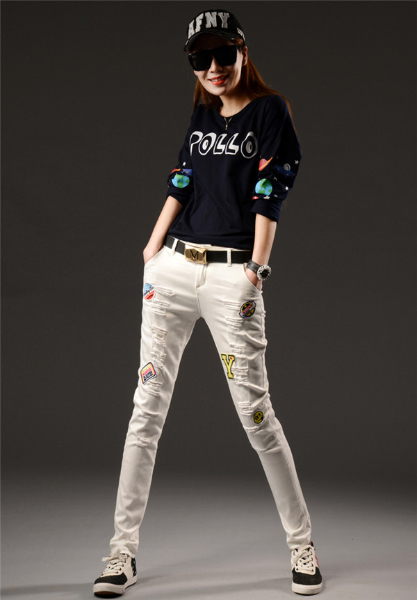 ワッペン刺繍スキニーパンツズボンボトム