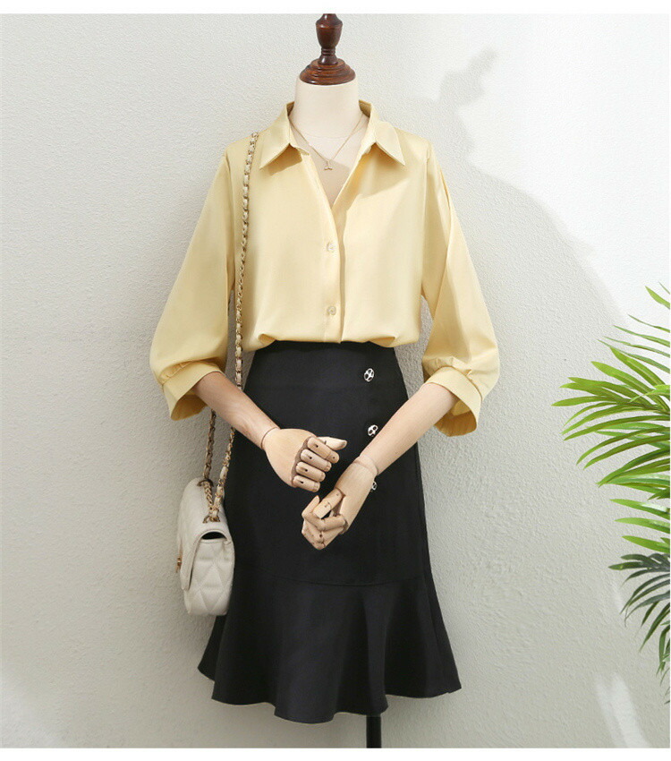 白、青、黄の3着を購入しました。生地は光沢があって、思っていたよりしっかり厚手でした。春、秋に大活躍してくれそうです。 オフィス用に襟ありである程度キチンとした物を求めていたので、いいお買い物が出来て大満足です!