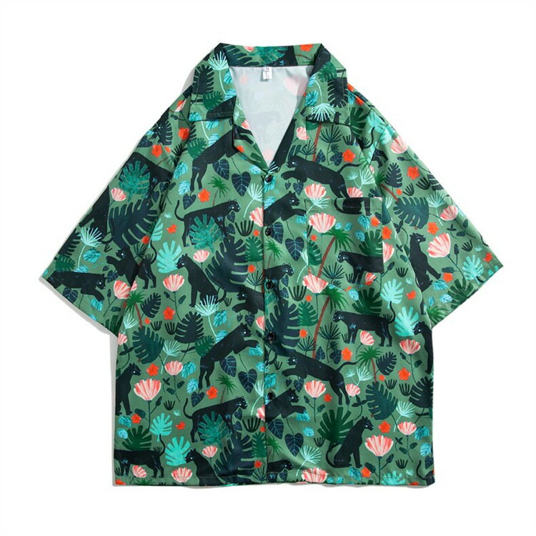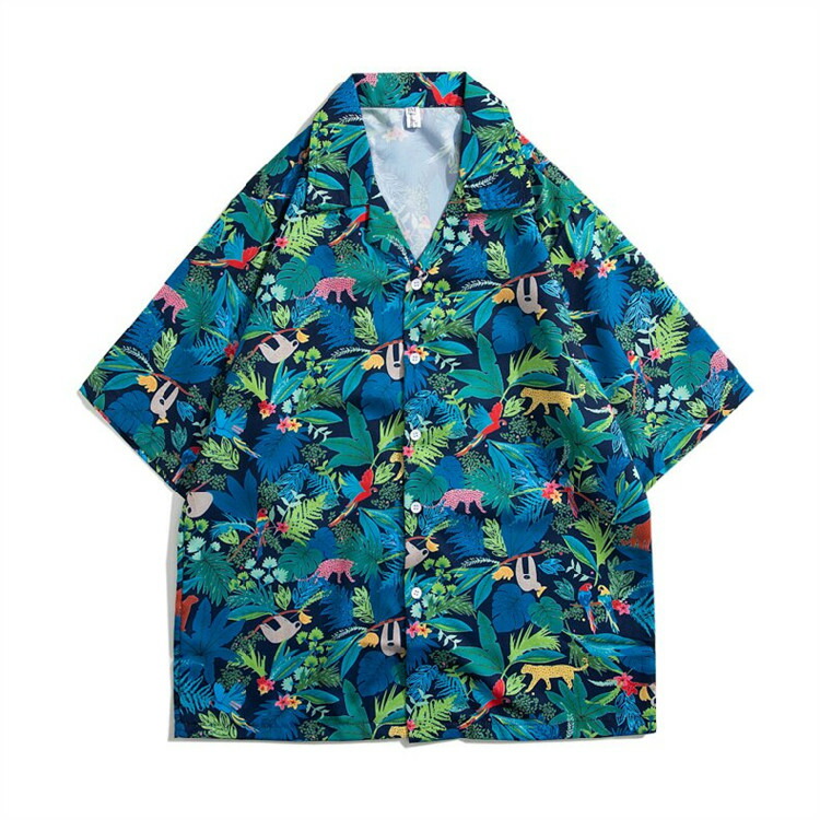 アロハシャツ ユニセックス レディース メンズ トップス シャツ ブラウス 夏物 夏服 夏用 半そで 半袖 柄シャツ 総柄 ボタニカル 衿 襟 大きいサイズ ゆったり 夏 プリント オープンカラー