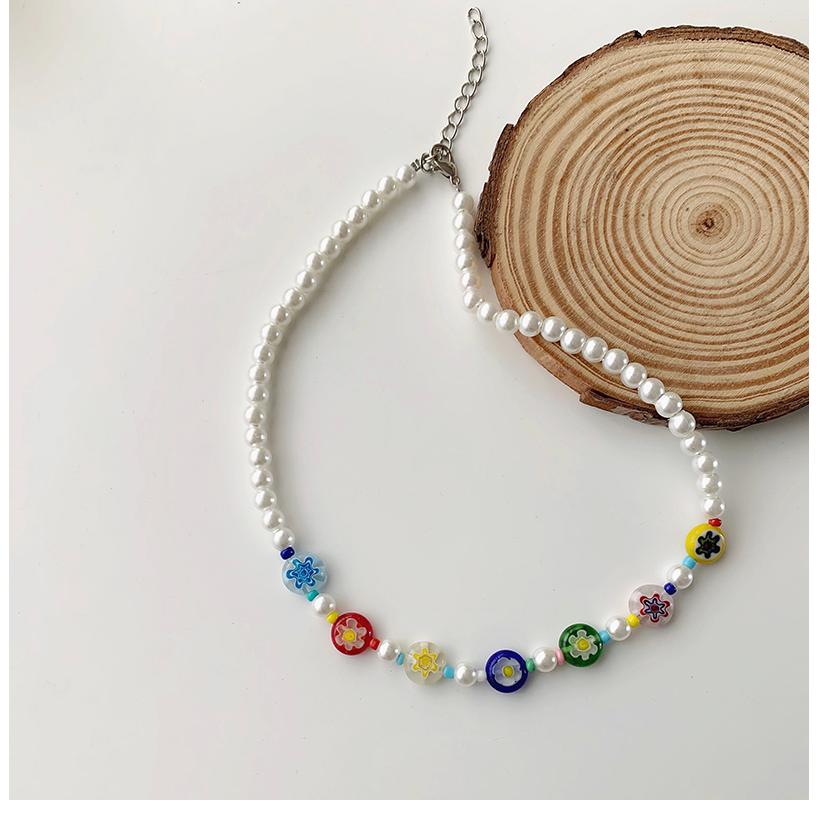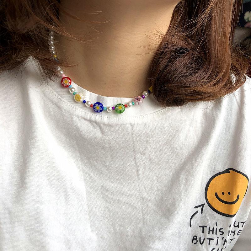 ネックレスチョーカーパールフラワービーズおしゃれかわいいカラフルレッド赤ピンクイエロー黄色オレンジブルー青パープルグリーン緑可愛いヒップホップHIPHOPレディースメンズガールズストリート韓国