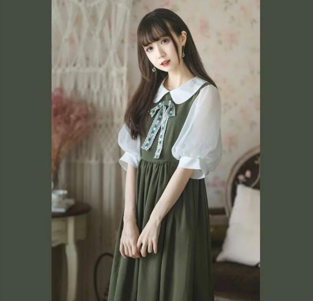 シアースリーブ ドッキングシャツ ボウタイシャツブラウス