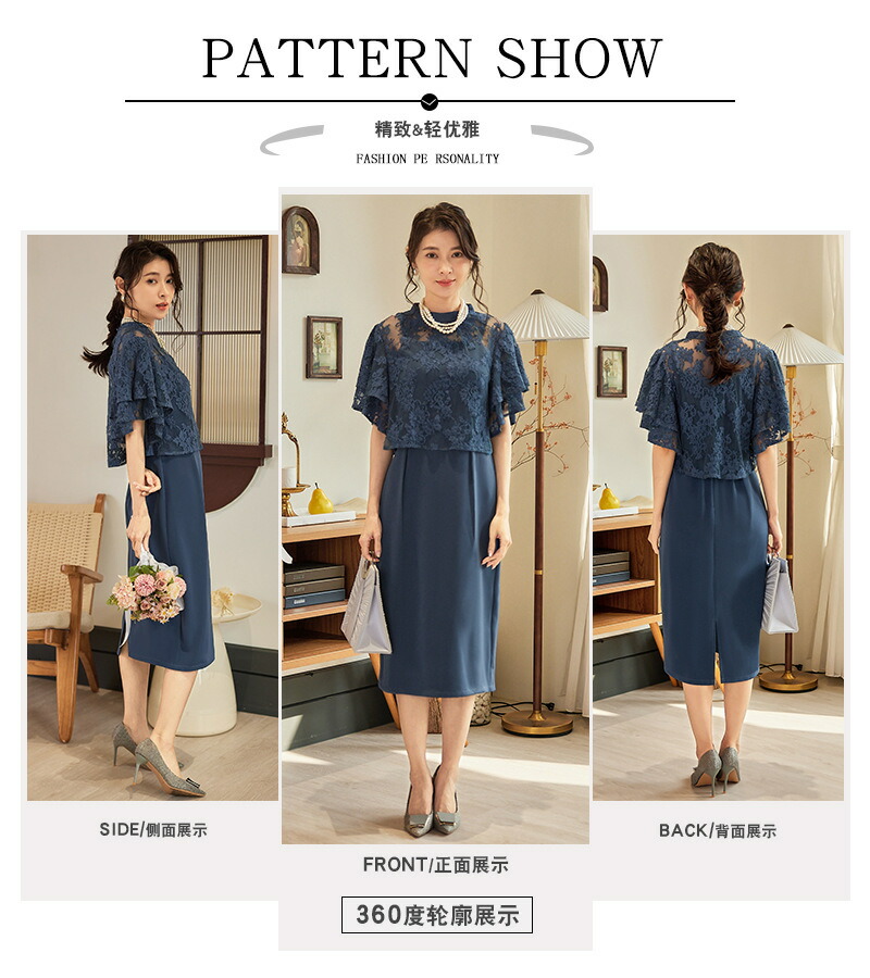 送料無料 パーティードレス 結婚式 2点セット カーディガン ワンピース ドレス 大きいサイズ有 20代 30代 40代 パーティドレス ミディアム ミディアムドレス 膝丈 ママ フォーマル レディース 二次会 演奏会 謝恩会 同窓会 レース