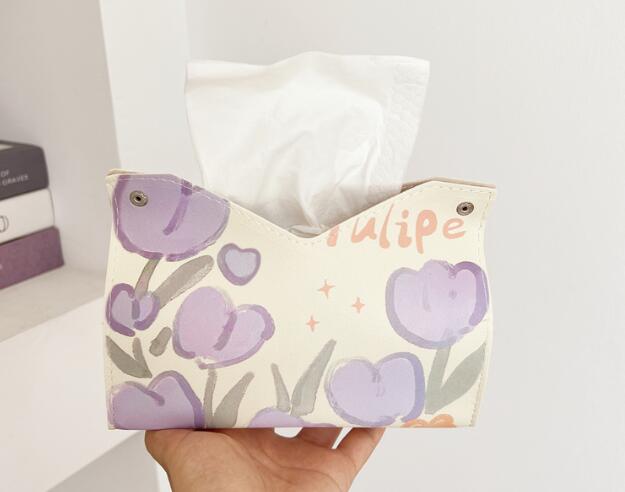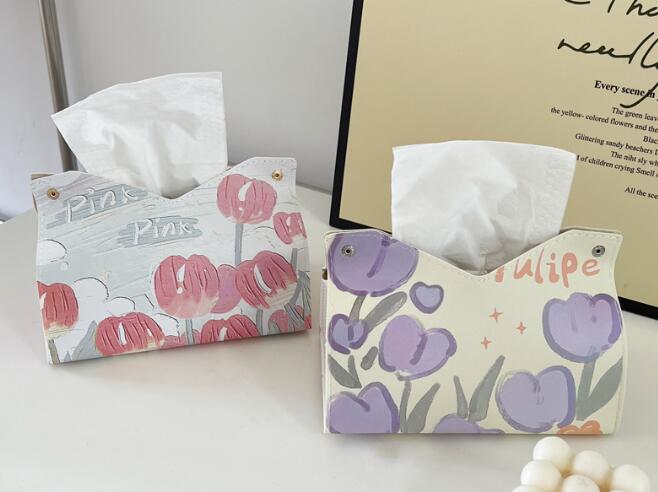 2色チューリップティッシュケース箱ケースボックスティッシュおしゃれ韓国雑貨インテリア北欧ピンクパープルホルダーかわいいキッチン収納アンティーク