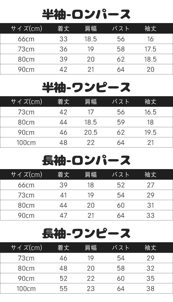 カラー: 半袖-ロンパース 半袖-ワンピース 長袖-ロンパース 長袖-ワンピース