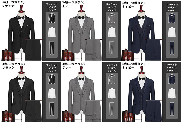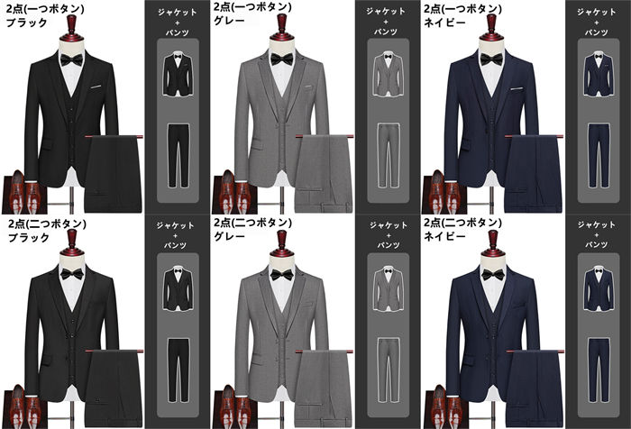 カラー: 1点(一つボタン) 1点(二つボタン) 2点(一つボタン) 2点(二つボタン) 3点(一つボタン) 3点(二つボタン)